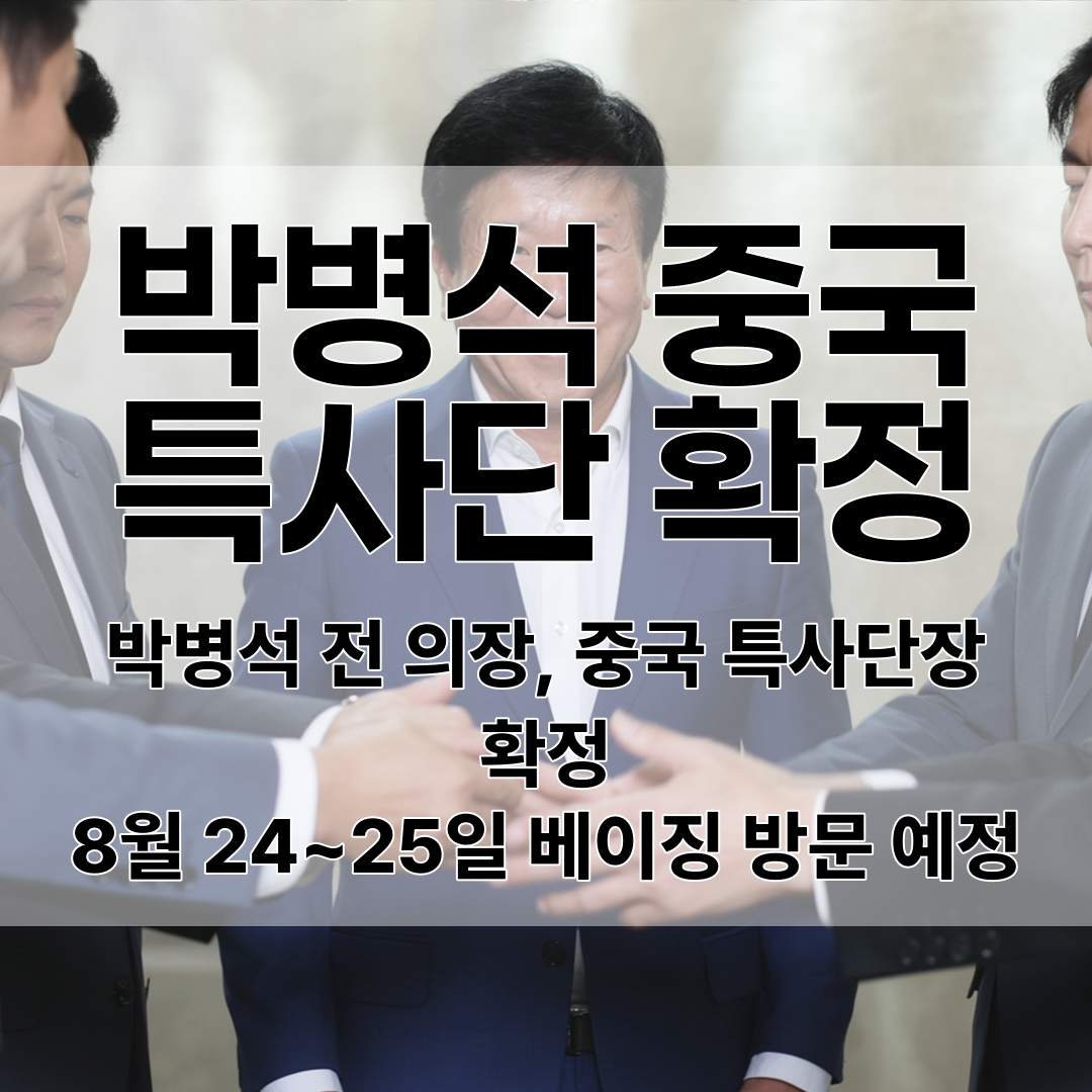 이재명 대통령이 박병석 전 국회의장을 단장으로 하는 대중 특사단을 8월 24~25일 파견하기로 확정했어요.