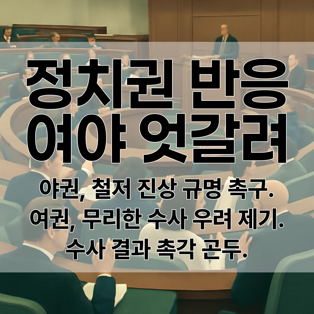 야권에서는 반드시 진상을 규명해 국민적 불신을 해소하라고 촉구하고 있고, 여권은 일부 무리한 수사와 절차적 정당성 문제를 지적하며 경계심을 나타냈어요.