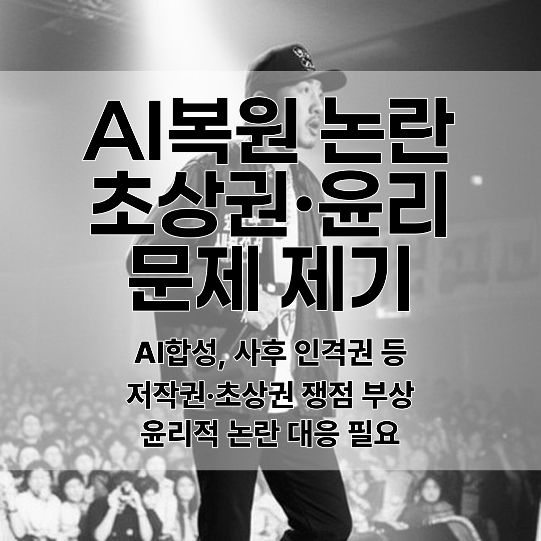 일각에서는 사망 연예인의 목소리를 AI로 복원하는 과정에서 저작권, 초상권, 사후 인격권 등 법적 논란이 제기되고 있다.