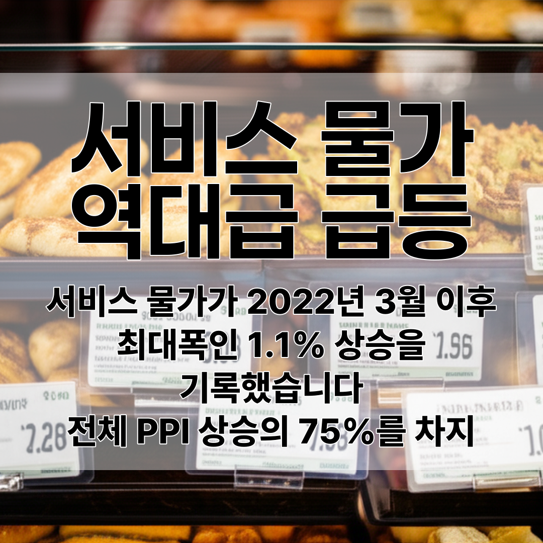 - 서비스 물가가 2022년 3월 이후 최대폭인 1.1% 상승을 기록했습니다 전체 PPI 상승의 75%를 차지