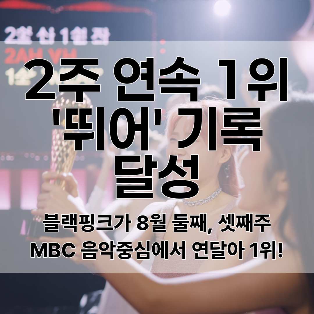 블랙핑크가 디지털 싱글 '뛰어(JUMP)'로 8월 둘째, 셋째주 MBC '쇼! 음악중심'에서 연달아 1위를 차지했어요! 🏆