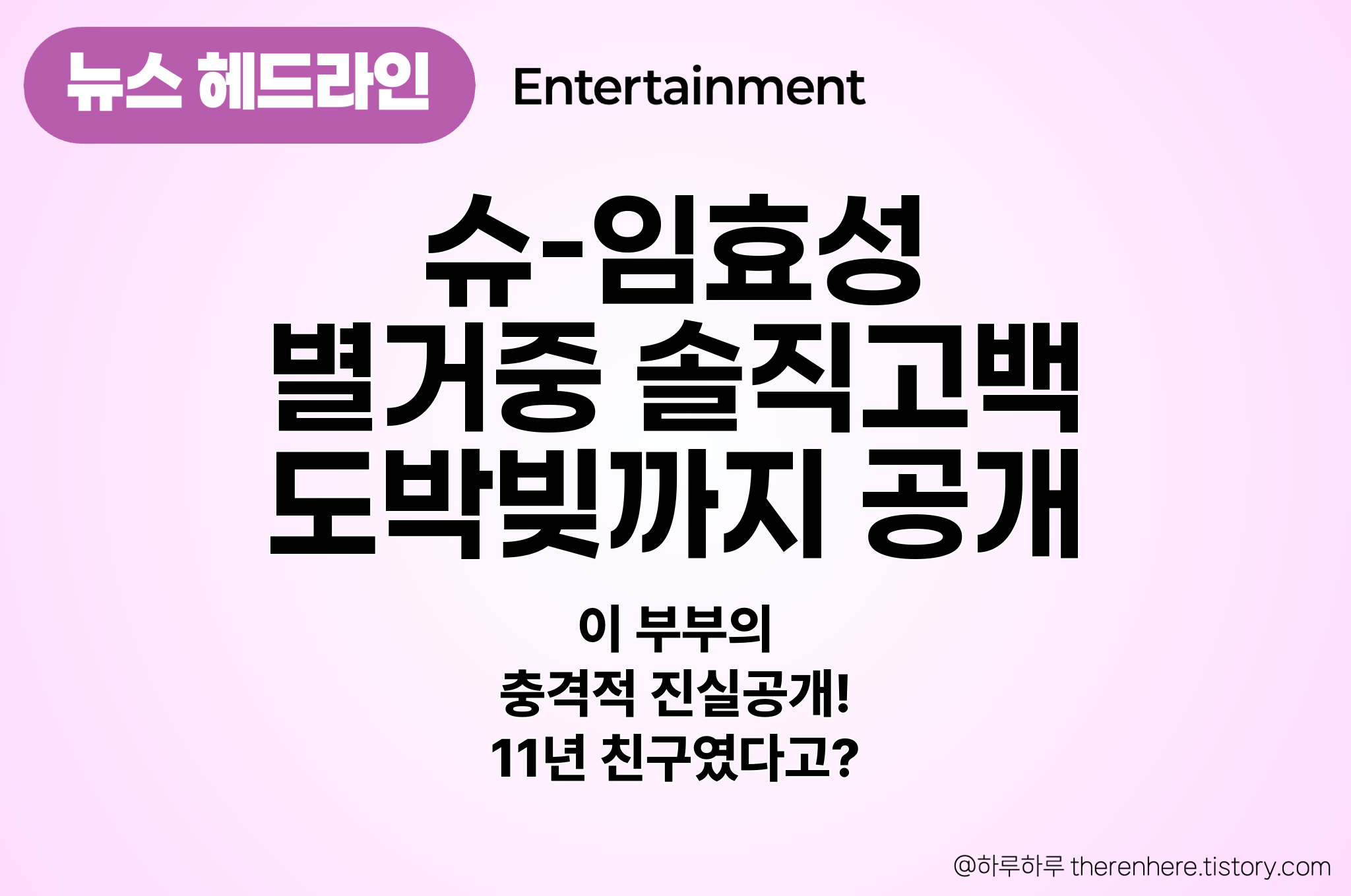 ⏺ 슈와 임효성이 직접 이혼설 해명 나서 유튜브에서 둘이 함께 입장표명 예정 별거사실 인정하며 친구같은 사이라고