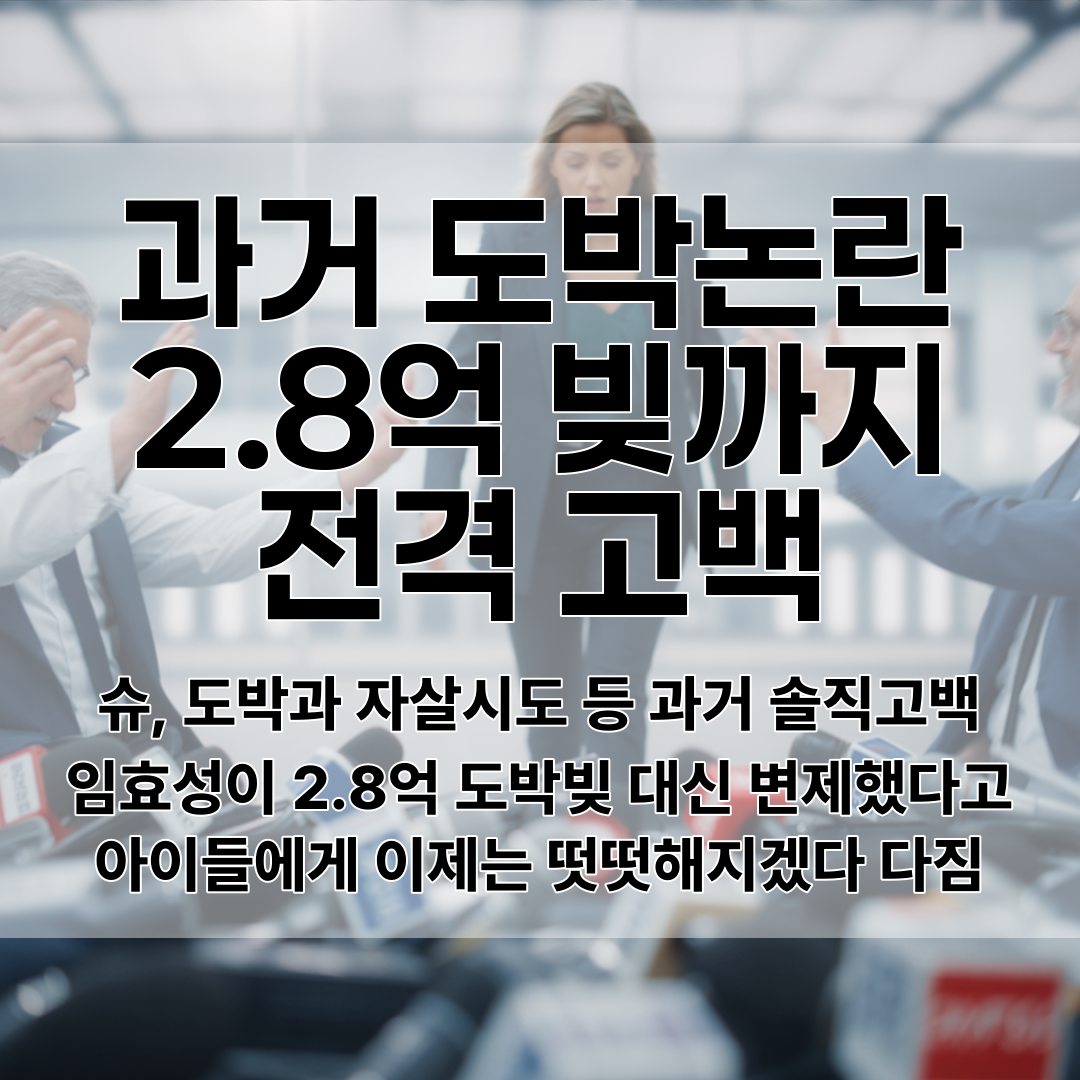 ⏺ 슈, 도박과 자살시도 등 과거 솔직고백 임효성이 2.8억 도박빚 대신 변제했다고 아이들에게 이제는 떳떳해지겠다 다짐