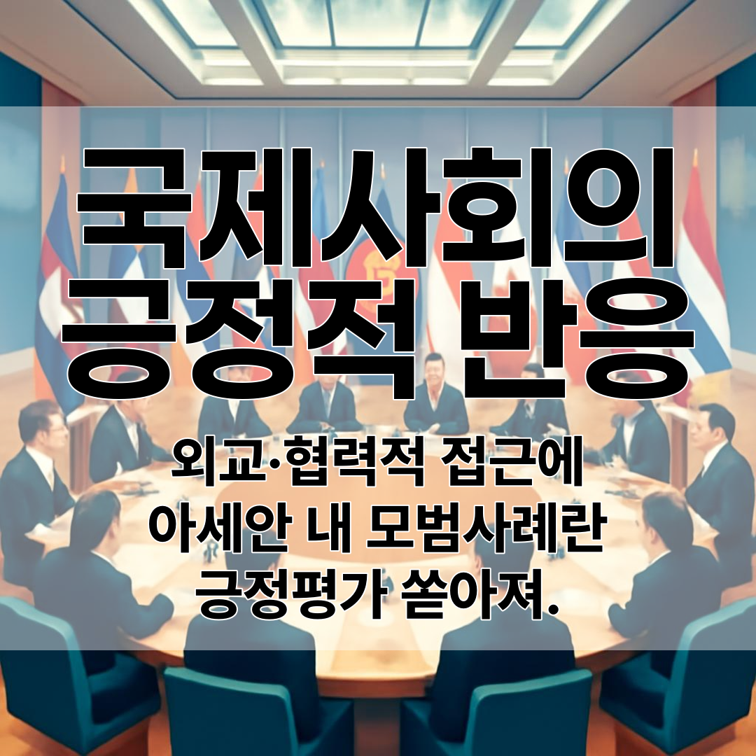 국제사회의 반응이 정말 좋아요. 아세안 국가들은 이런 평화적이고 외교적인 분쟁 해법을 높이 평가하고 있습니다. 👏