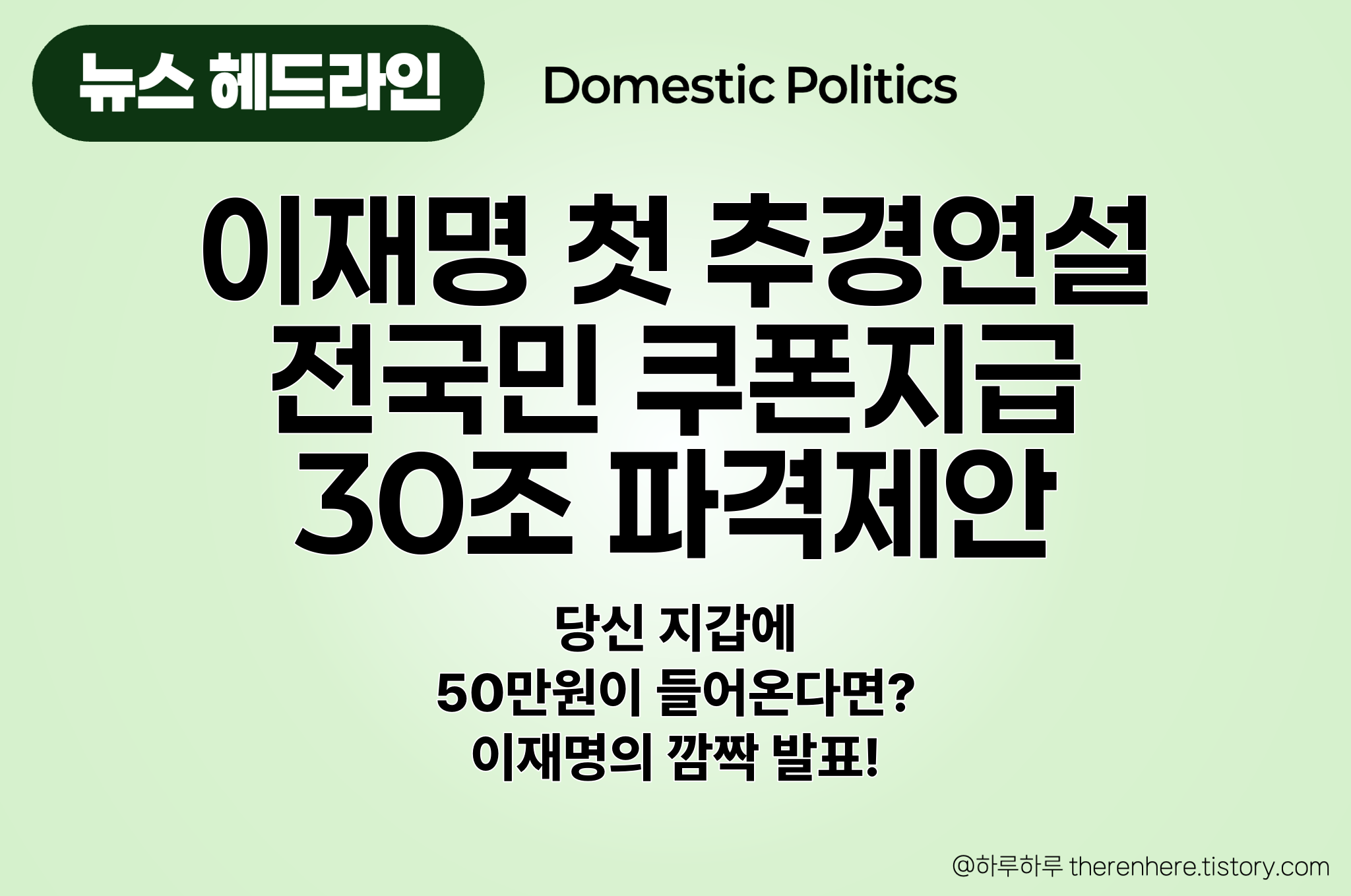 ⏺ 전국민 대상 차등지급 쿠폰 발표 기초수급자 50만원, 상위층 15만원 총 13조 2천억 규모 민생지원