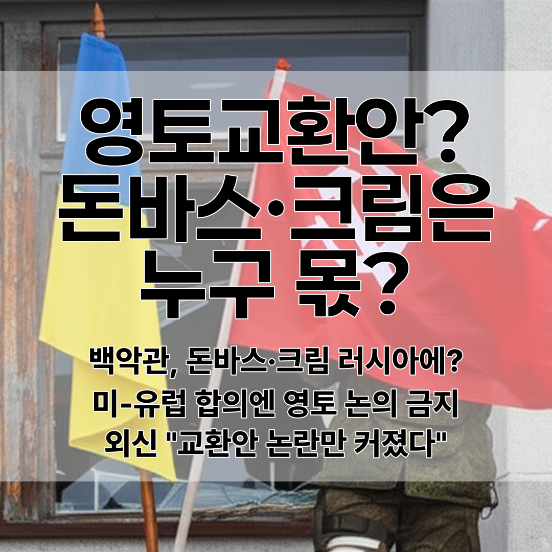 월스트리트저널 등 외신에 따르면 트럼프 대통령은 공식적으로 유럽 정상들과 '영토 문제 불가 논의'에 동의했으나, 회담 직전 백악관에서는 돈바스와 크림반도를 러시아에 넘기고 대신 다른 지역은 철수하는 영토 교환 중심 협정을 시도했다는 논란이 제기됐습니다.