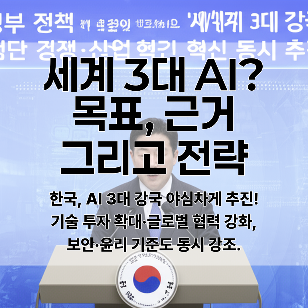 - 한국, AI 3대 강국 야심차게 추진! 기술 투자 확대·글로벌 협력 강화, 보안·윤리 기준도 동시 강조.