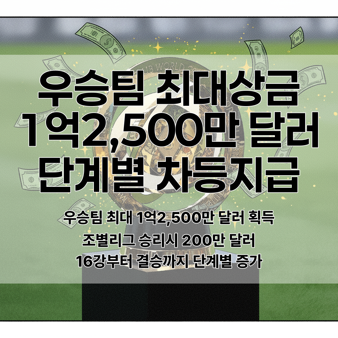 우승팀이 받을 수 있는 최고 상금은 무려 1억 2,500만 달러(약 1,830억 원)에 달해요! 💰 이건 정말 어마어마한 금액이죠.