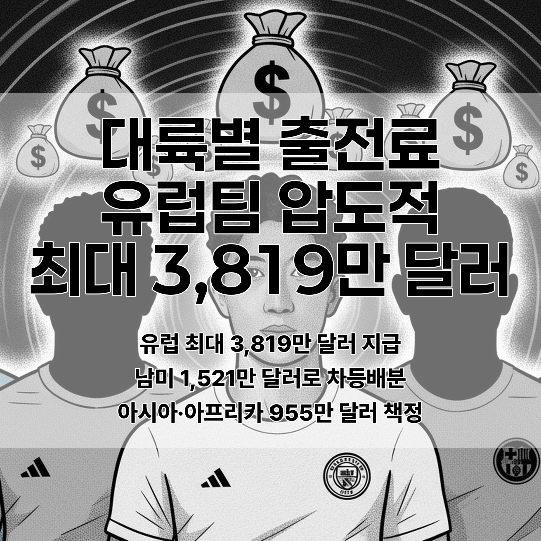 출전료 배분에서도 대륙별로 큰 차이가 나타났어요. 유럽 소속 클럽은 최대 3,819만 달러, 남미는 1,521만 달러를 받게 됩니다.