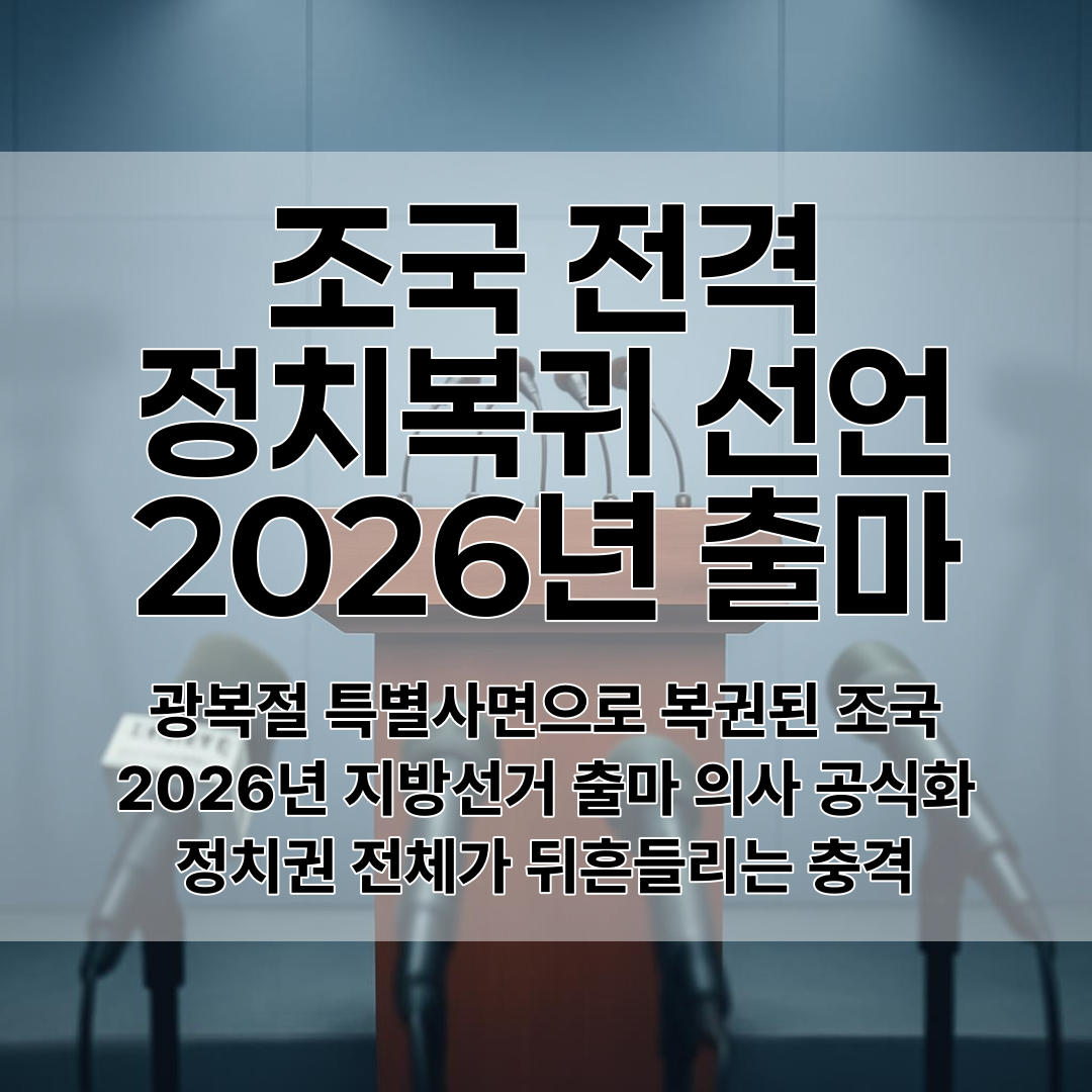 자녀 입시 비리 등으로 수감됐다가 2025년 광복절 특별사면으로 복권된 조국 전 장관이 2026년 6월 지방선거나 재보궐선거 출마 의사를 공식 발표했다.