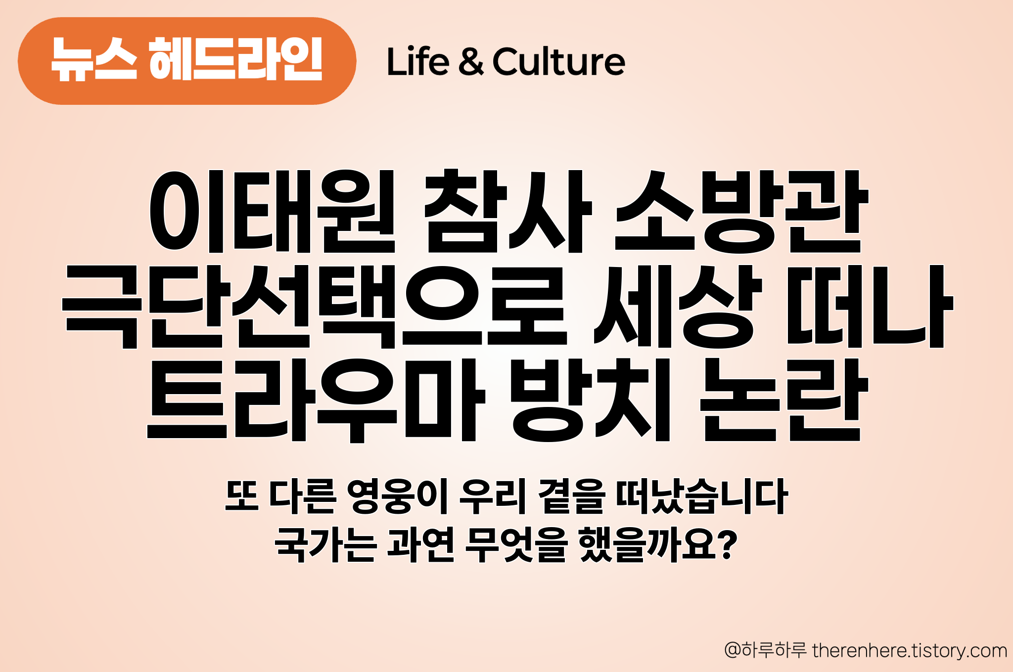 국민의 생명을 구하려다 자신의 마음에 깊은 상처를 입은 또 한 명의 영웅을, 우리 사회가 끝까지 지켜내지 못한 안타까운 현실입니다.