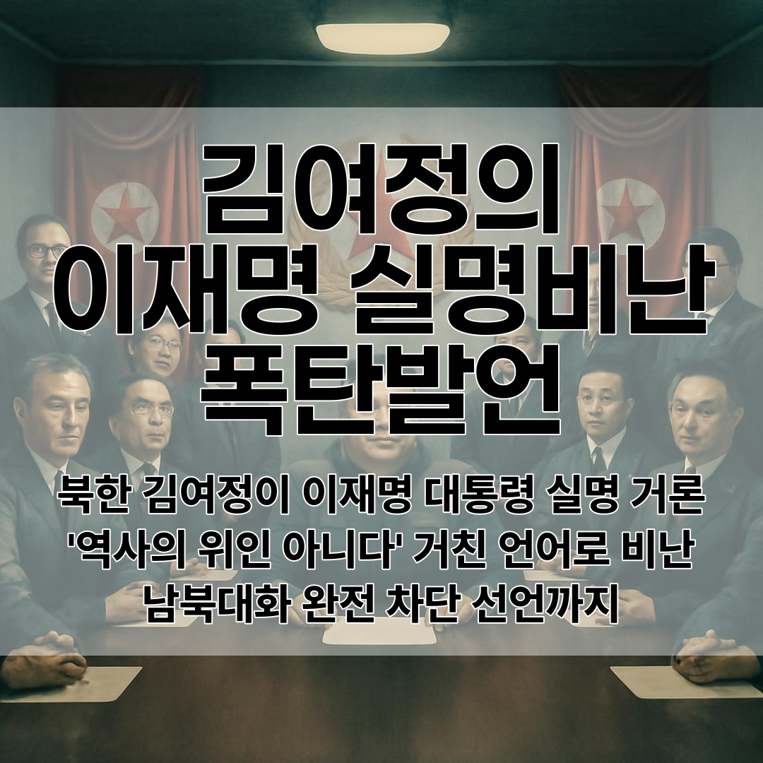 북한 김여정 노동당 부부장이 이재명 대통령을 실명으로 거론하며 '역사의 위인이 아니다', '망상이고 개꿈'이라고 비난했으며, 남한 정부가 보수든 진보든 외교 상대로서 가치가 없다고 단언했다.