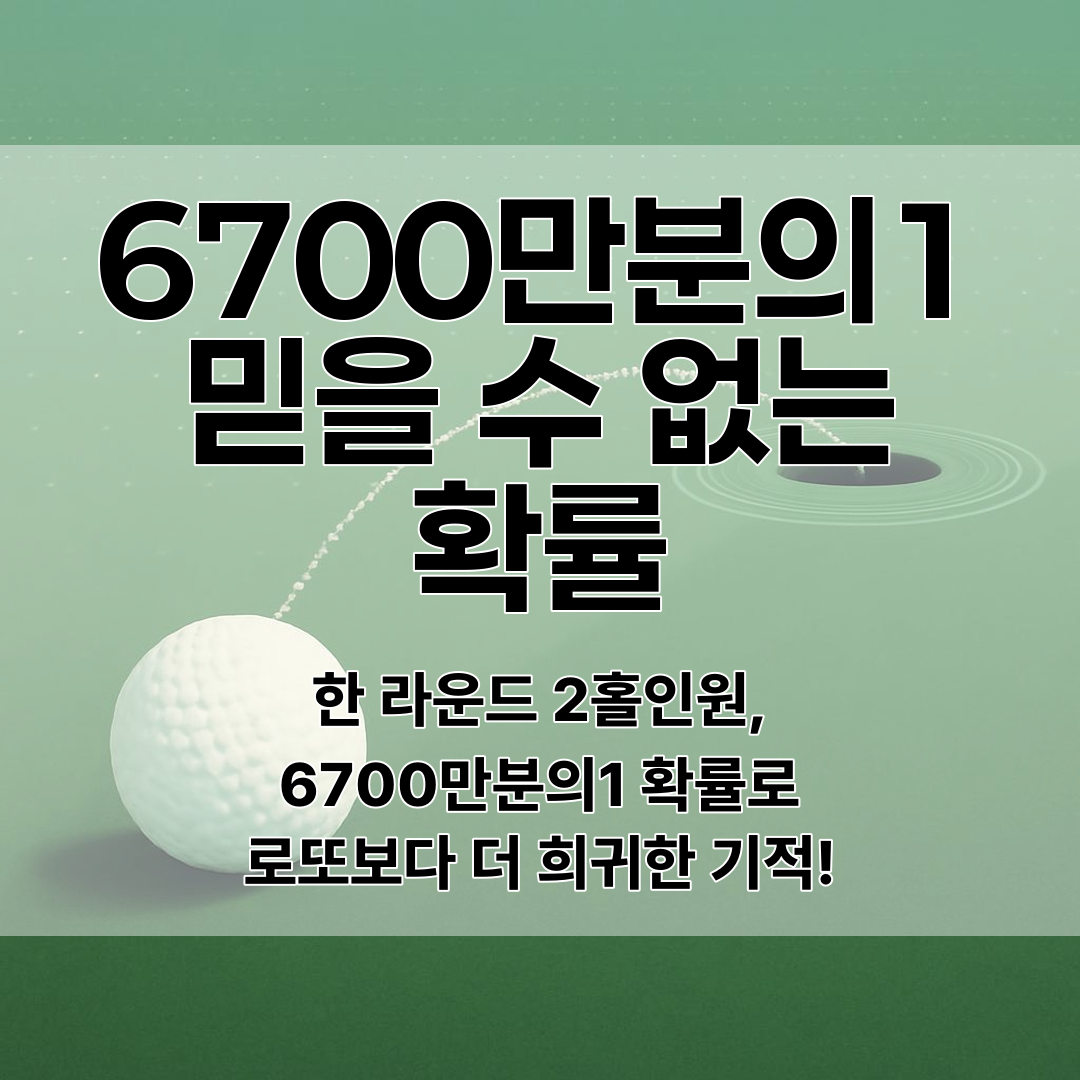 대한골프협회 발표에 따르면, 아마추어 골퍼가 한 라운드에서 2번의 홀인원을 할 확률은 무려 6700만분의 1이라고 해요. 이게 얼마나 희박한 확률인지 감이 안 오시죠?
