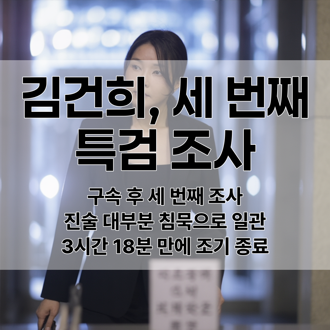 김건희가 구속된 후 세 번째로 특검에 소환되어 대부분의 질문에 침묵으로 일관했으며, 특검팀이 준비한 100페이지 분량 질문지 중 절반만 진행된 채 3시간 18분 만에 조사가 조기 종료되었다.