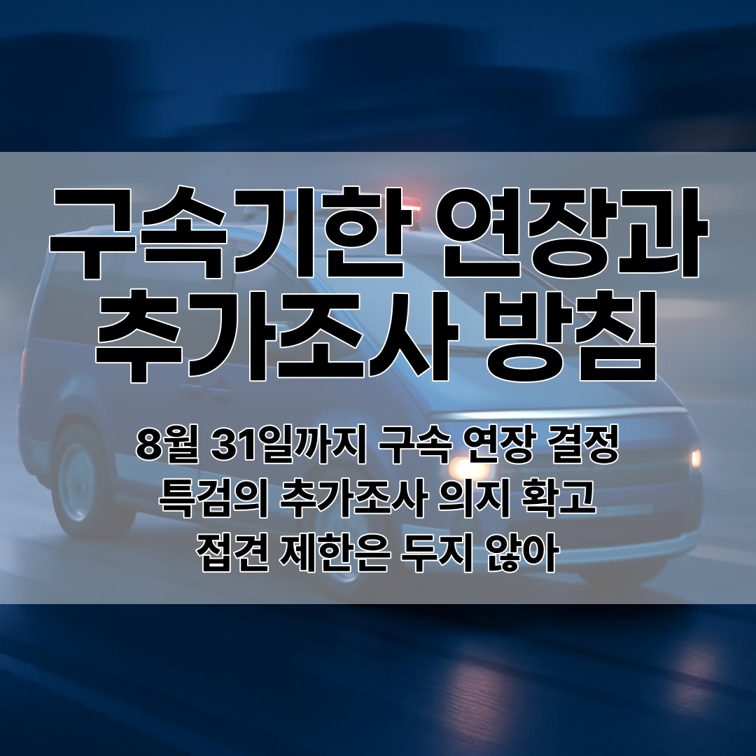 특검 측이 김건희의 구속기한을 8월 31일까지 연장하여 추가 조사 시간을 확보했으며, 변호인 접견이나 면회 제한은 두지 않아 법적 투명성을 유지하고 있다고 밝혔다.리