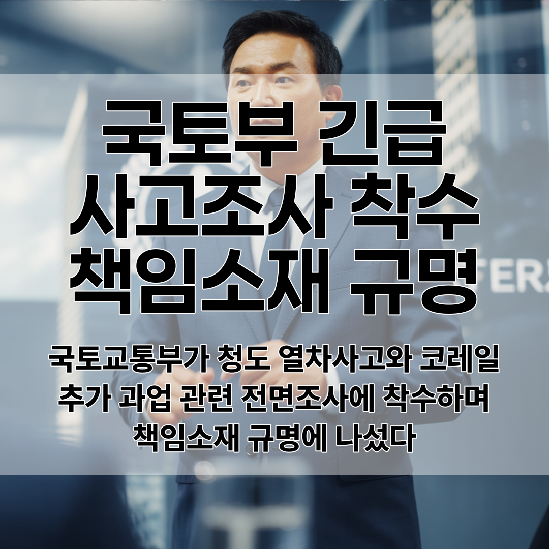 국토교통부가 코레일과 하청업체 간 계약 및 업무 변경 과정, 보고서 제출 기한 단축 등 절차적 문제와 현장 관리 실태에 대한 전면조사에 착수했다.