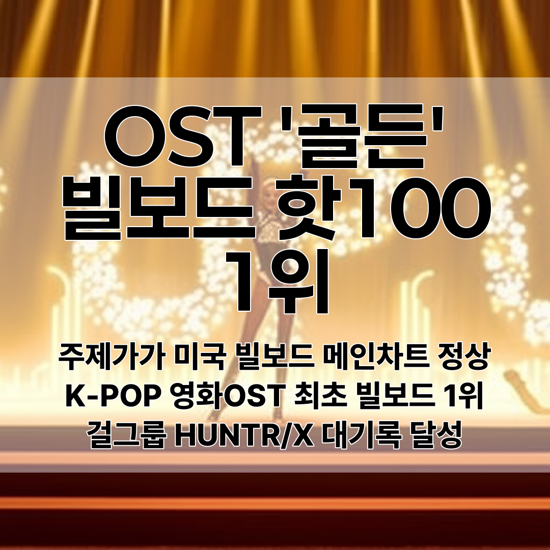 걸그룹 HUNTR/X가 부른 주제가 골든이 미국 빌보드 메인 싱글차트 핫100에서 1위에 오르며 K-POP 영화 OST 최초 빌보드 정상 기록을 세웠다.