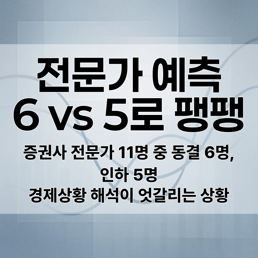 국내 주요 증권사 거시경제 및 채권 전문가 11명 중 6명은 기준금리 동결(2.5%)을, 5명은 인하(2.25%)를 예측하여 의견이 팽팽히 갈리고 있다.