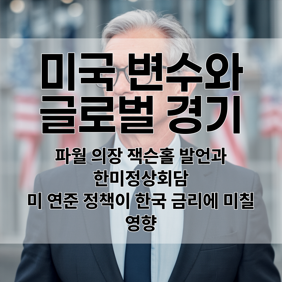 한국 기준금리 결정에는 미국 요인도 중요한 변수예요. 특히 제롬 파월 연준 의장의 잭슨홀 심포지엄 발언과 한미정상회담 결과가 주목받고 있습니다.