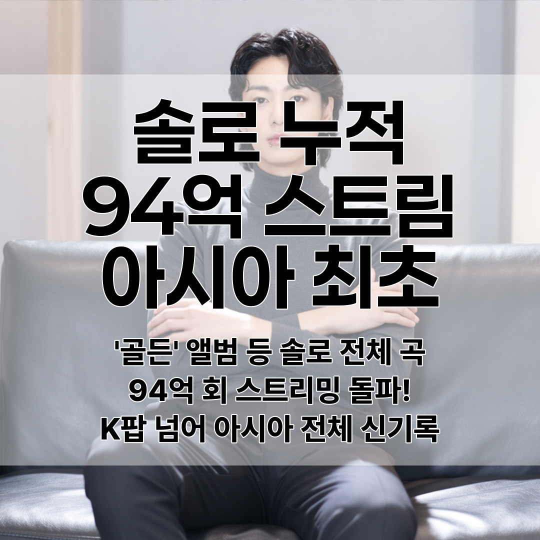 정국의 솔로 활동 성과는 '세븐' 하나로 끝나지 않아요. 전체 솔로 곡들의 누적 스트리밍이 무려 94억 회를 넘었거든요! 😱