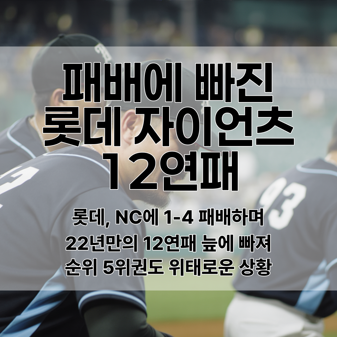롯데 자이언츠가 NC 다이노스에 1-4로 패배하며 충격적인 12연패 늪에 빠졌네요 😰
