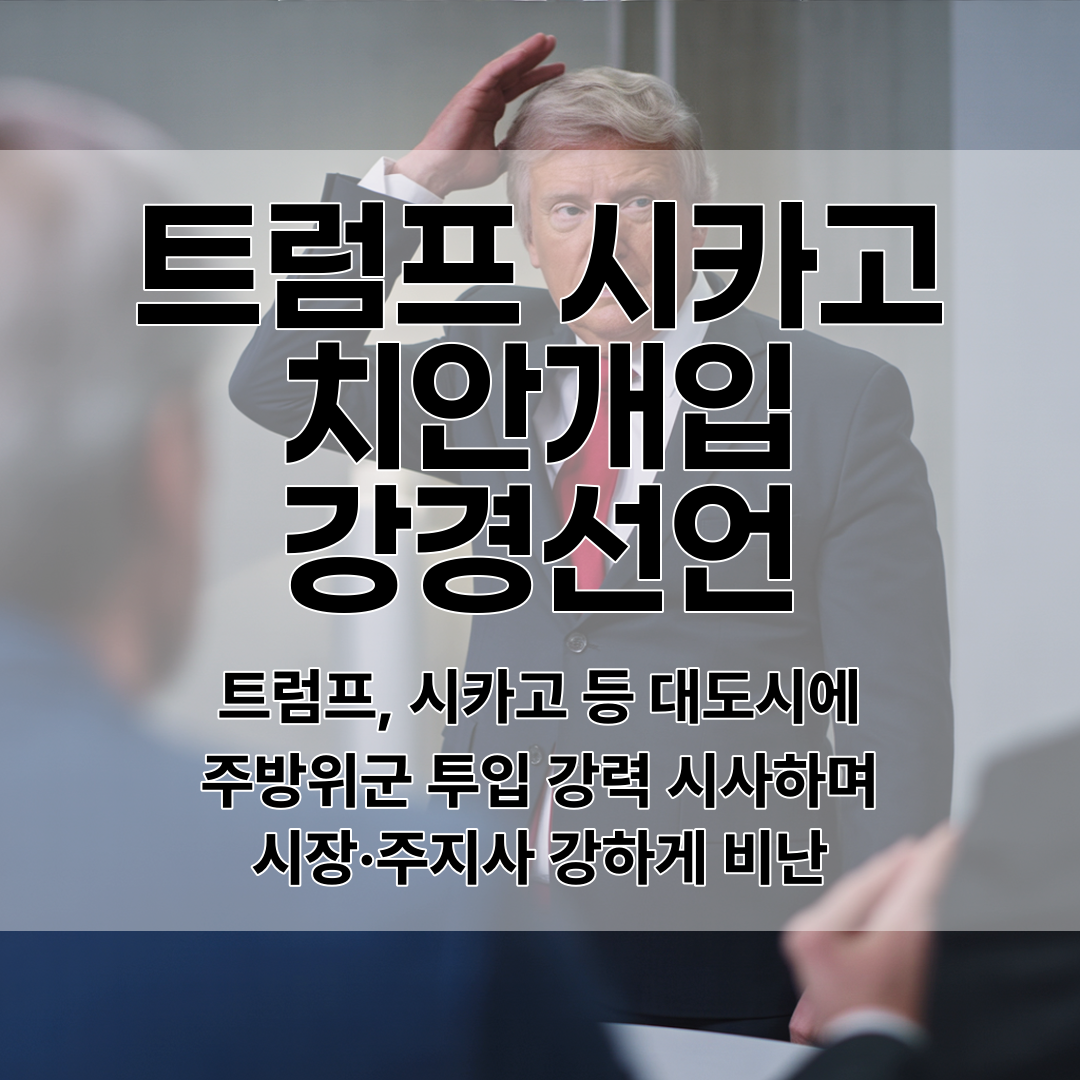 트럼프 대통령이 시카고를 다음 타겟으로 지목하며 필요시 주방위군 투입을 시사했고, 브랜든 존슨 시장과 JB 프리츠커 주지사를 강도 높게 비판했다.