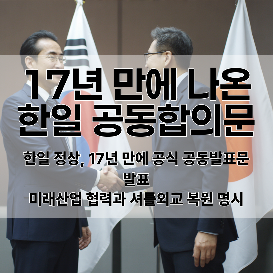 2025년 8월 23일, 한국과 일본 양국 정상이 17년 만에 공동발표문을 공식 채택했어요.