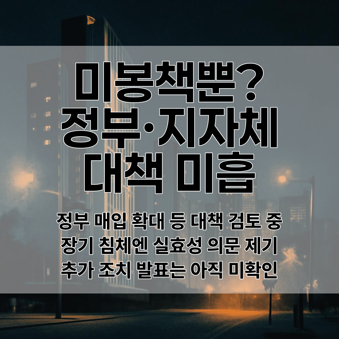 정부와 부산시는 미분양 해소를 위해 준공 후 미분양 주택을 공적으로 매입하는 방안 등을 검토하고 있다고 해요. 공급 조정이나 건설사와의 협상 등 여러 정책 방안들이 거론되고 있습니다.