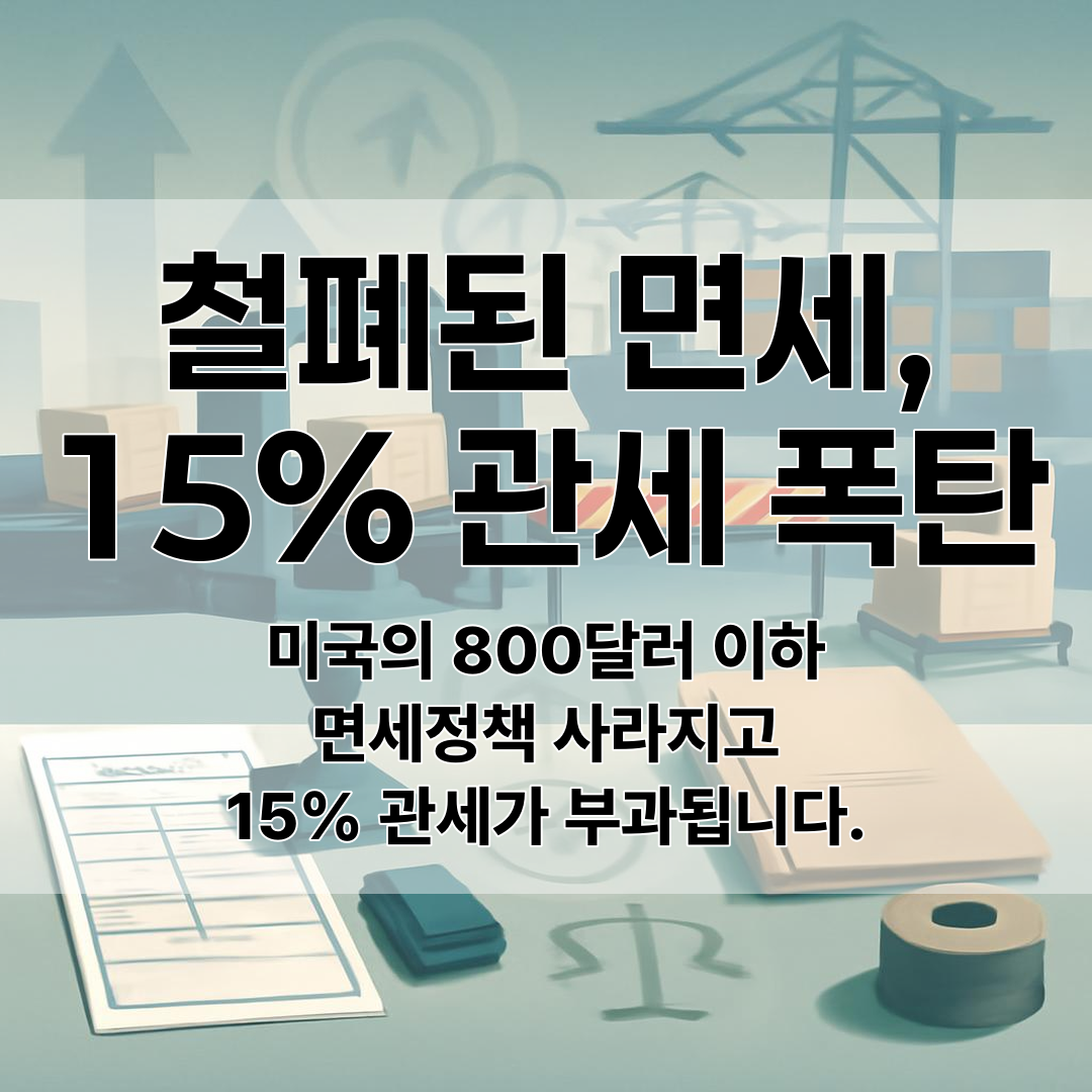 미국 정부가 기존의 800달러 이하 소액 수입품에 적용하던 면세(디미니미스) 제도를 완전 폐지했어요. 이제 모든 우편물(문서 제외)에 15% 관세가 부과되며, 의무적으로 세관 신고도 해야 합니다.
