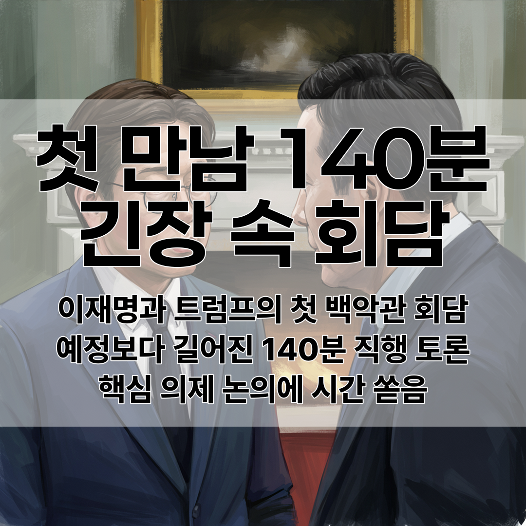 회담은 원래 예정된 시간보다 약 30분 이상 길어져, 양국 현안에 대한 깊이 있는 대화가 이어졌음을 보여주네요. 오벌오피스에서 1시간, 이어 캐비닛룸에서 오찬 및 확대회담까지 총 2시간 20분간 진행됐어요.