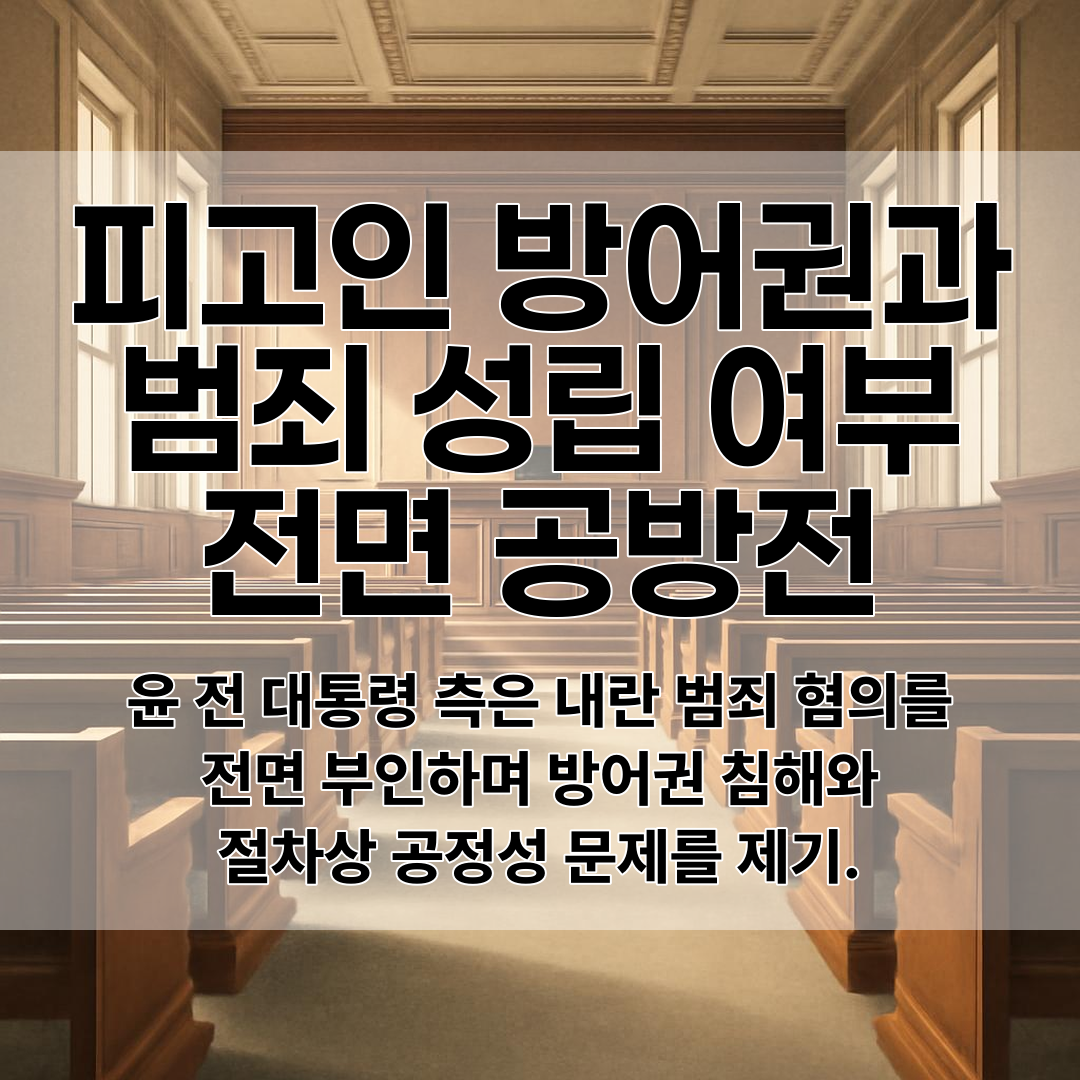 윤 전 대통령과 변호인단은 내란 범죄 혐의를 전면 부인하며 방어권 침해와 수사 절차의 공정성 문제를 제기하고 있다.