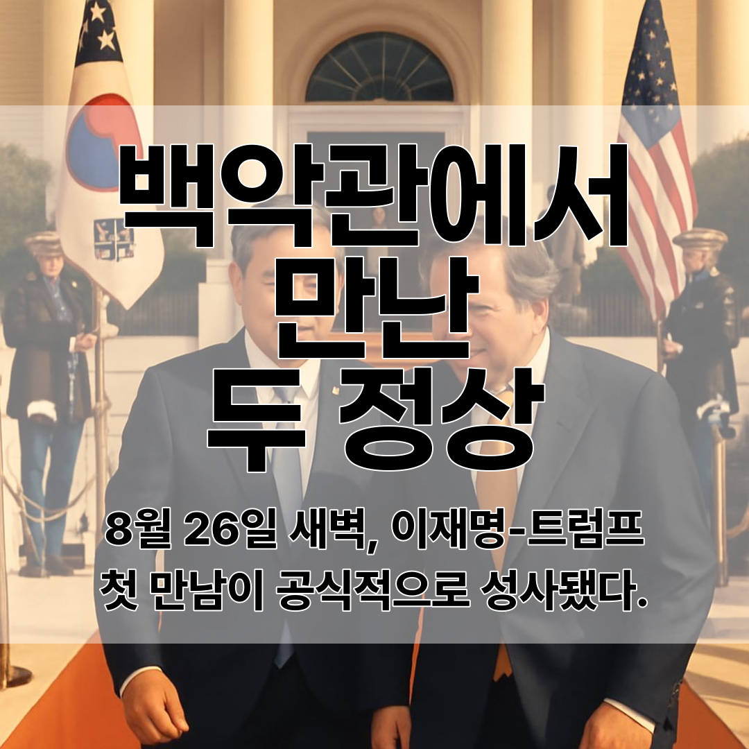 2025년 8월 26일 새벽 1시 15분, 이재명 대통령과 트럼프 대통령이 백악관 오벌오피스에서 30분간 단독 양자회담을 진행했으며, 전 세계가 주목하는 가운데 실시간 중계가 이루어졌다.