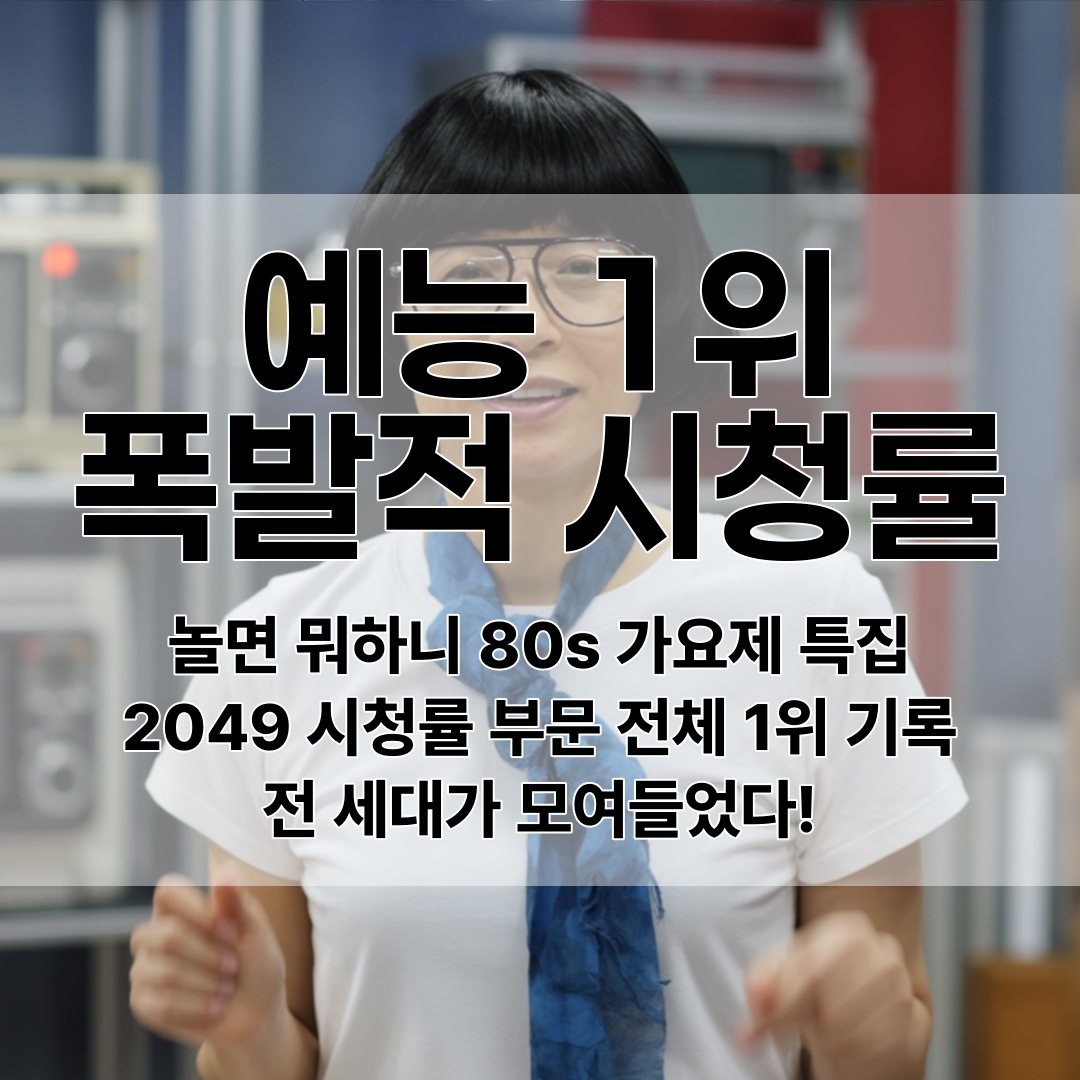 2025년 8월 23일과 30일 방송된 MBC '놀면 뭐하니?' 80s 서울가요제 특집이 가구 시청률 6.3%, 2049 시청률 3.0%를 기록하며 동시간대 예능·비드라마 부문에서 1위를 차지했다.