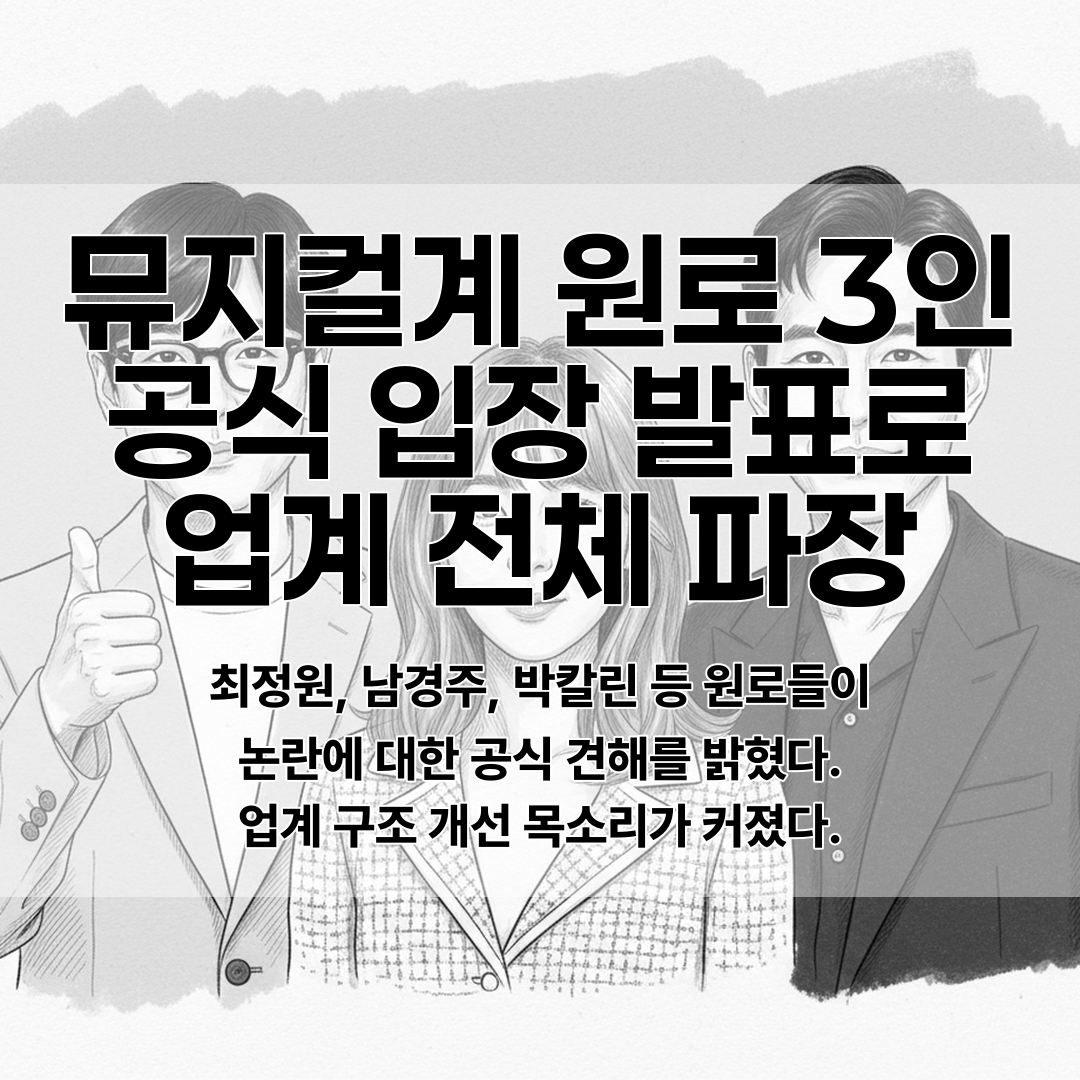 원로들의 입장 표명은 이 사건이 단순한 개인 갈등이 아닌, 뮤지컬계 전체의 구조적 문제임을 확인시켜줬습니다. 업계의 자정 노력이 필요하다는 목소리도 높아졌죠.