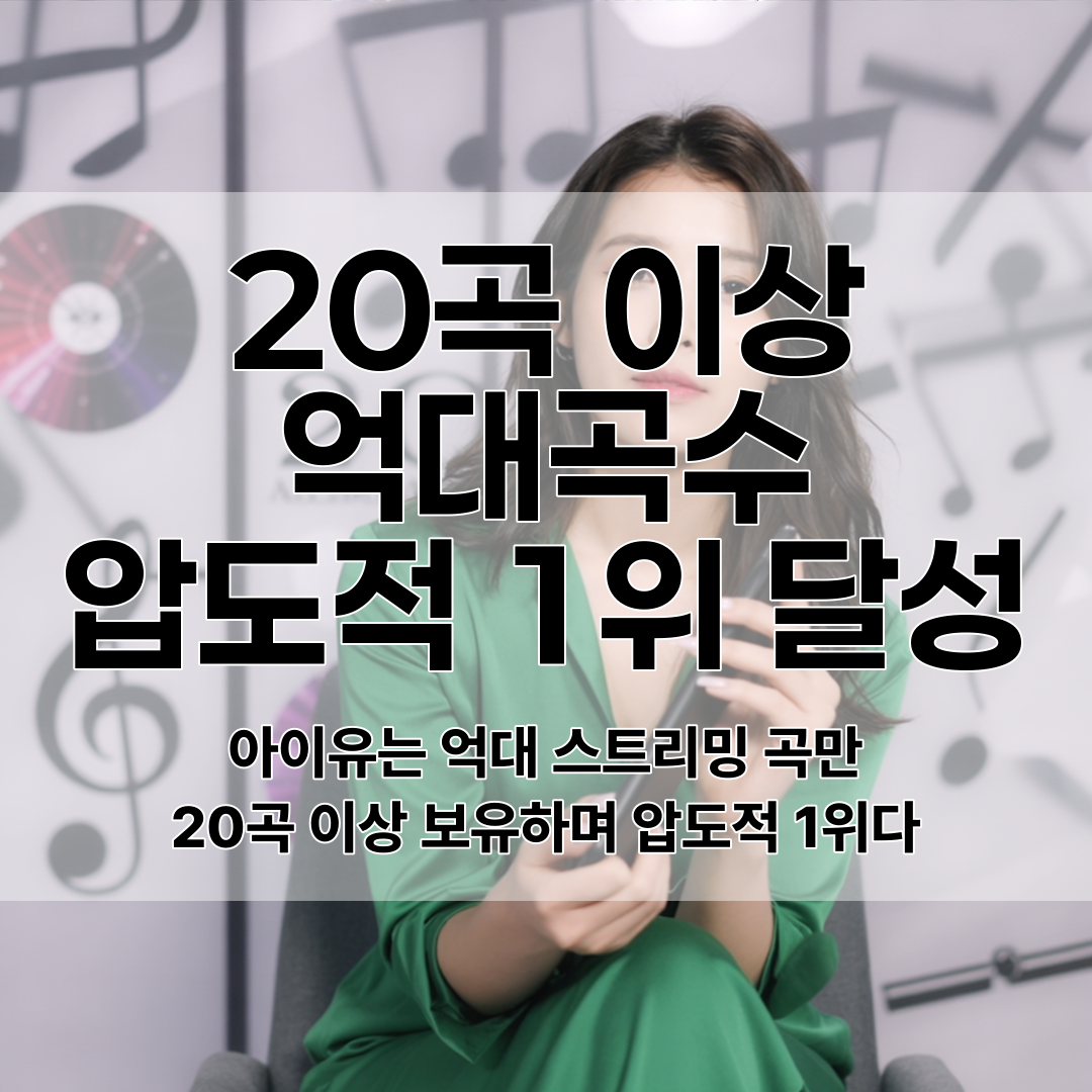 아이유는 2011년 이후 1억회 이상 스트리밍된 히트곡을 20여 곡 보유하고 있으며, 이는 K팝 역사상 압도적 1위 기록이라고 전해진다.