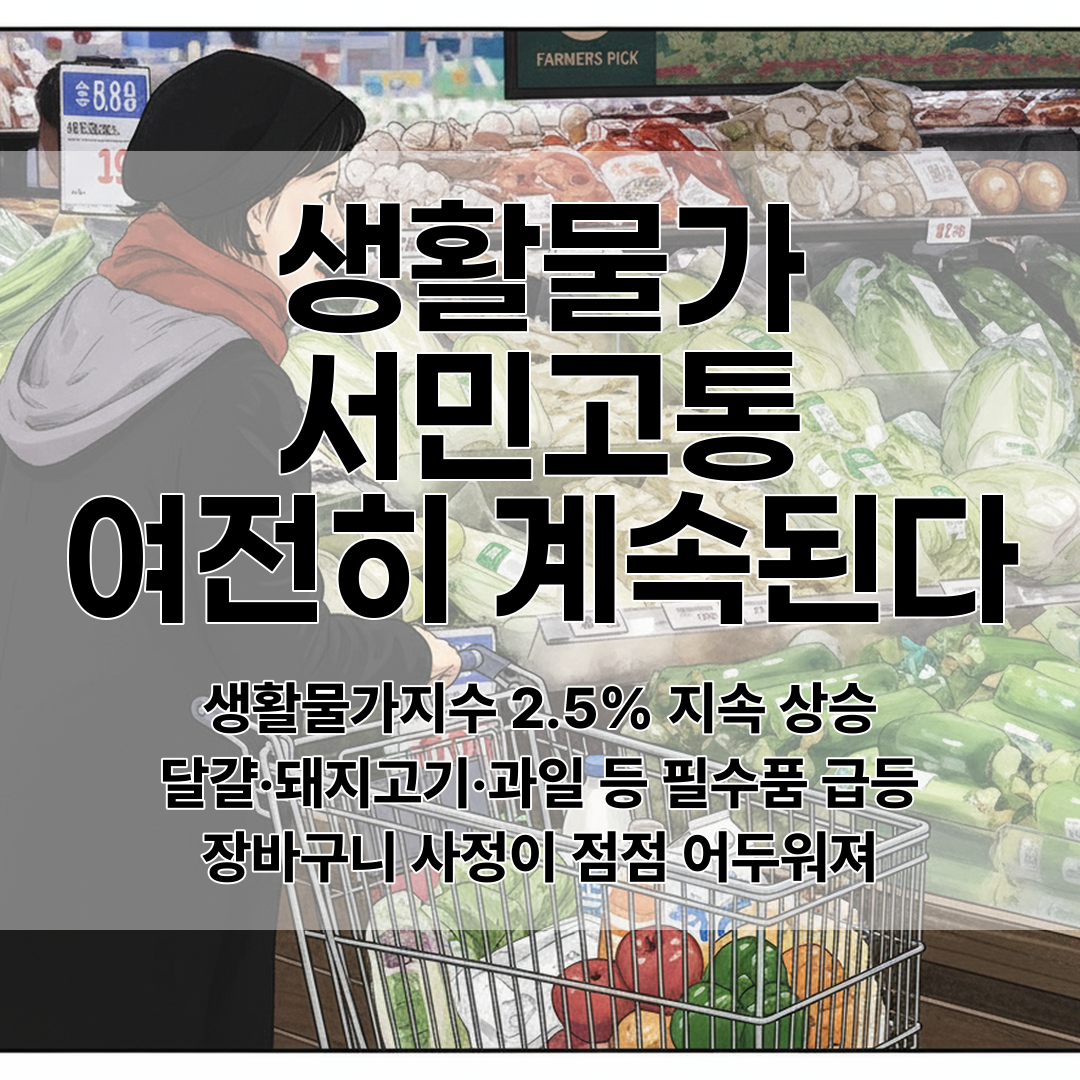 통계상 물가 안정에도 불구하고 실제 소비자들이 체감하는 장바구니 물가는 여전히 부담스러운 수준을 유지하고 있어 경제지표와 실생활 간 괴리가 존재한다.