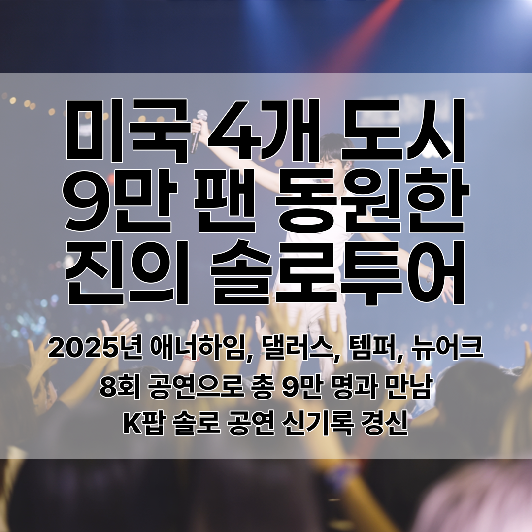 BTS 진이 2025년 여름 미국 4개 도시에서 펼친 솔로 투어가 대성공을 거뒀어요! 🎤