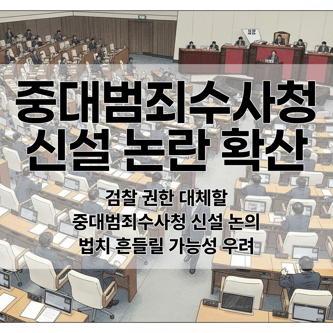 검찰 폐지와 함께 새로운 수사청(중대범죄수사청) 설립이 논의되고 있는데, 이는 국가 권력기관의 균형 자체를 뒤흔들 수 있는 중대한 변화입니다.