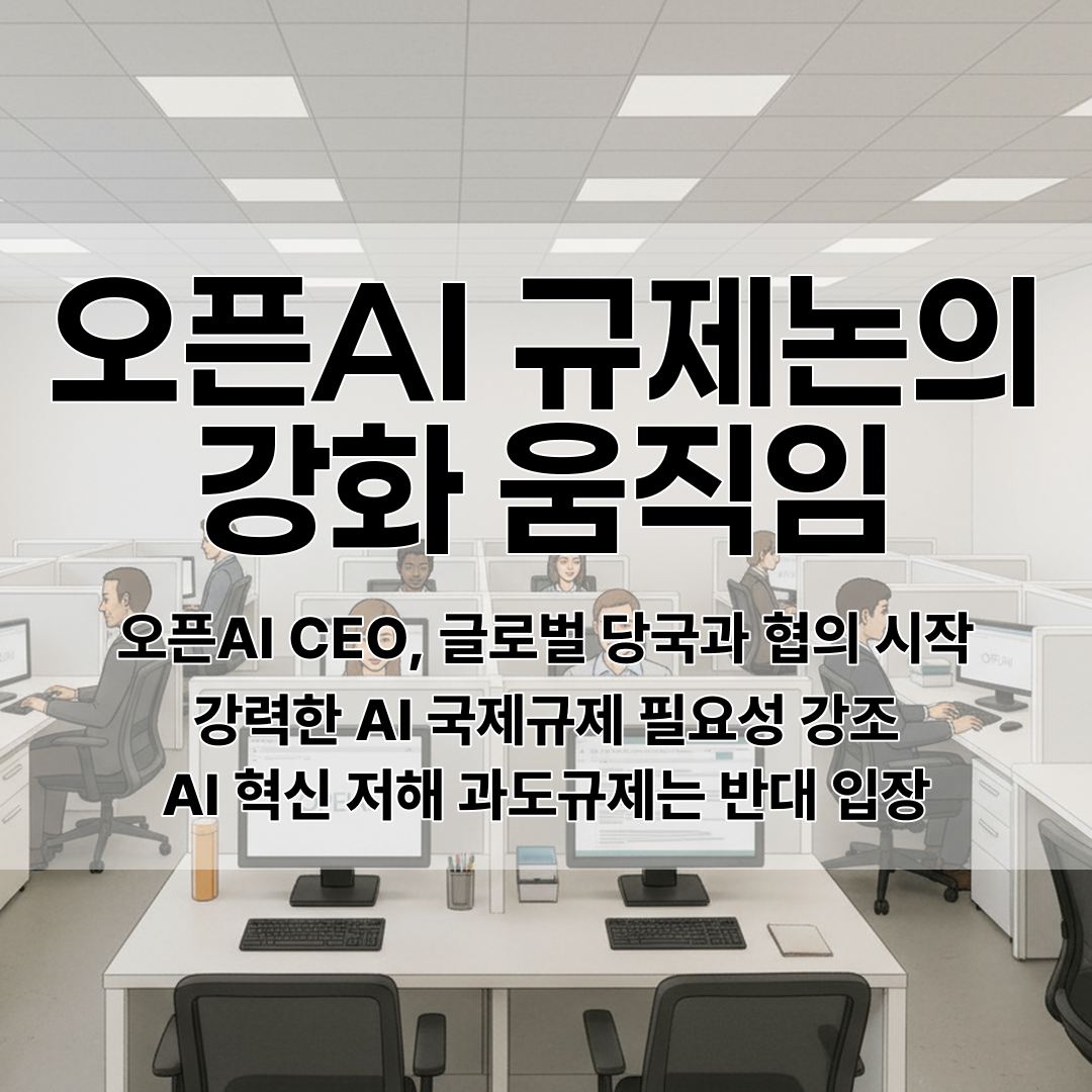샘 알트만이 세계 각국 규제 당국과 면담을 가지며 강력한 AI 모델에 대한 국제 라이선스 체계와 글로벌 규제의 필요성을 강조했다. 동시에 과도한 규제가 AI 혁신을 저해할 수 있다고 경고하며, 오픈소스 모델 공개를 일시 연기한 상황이다.