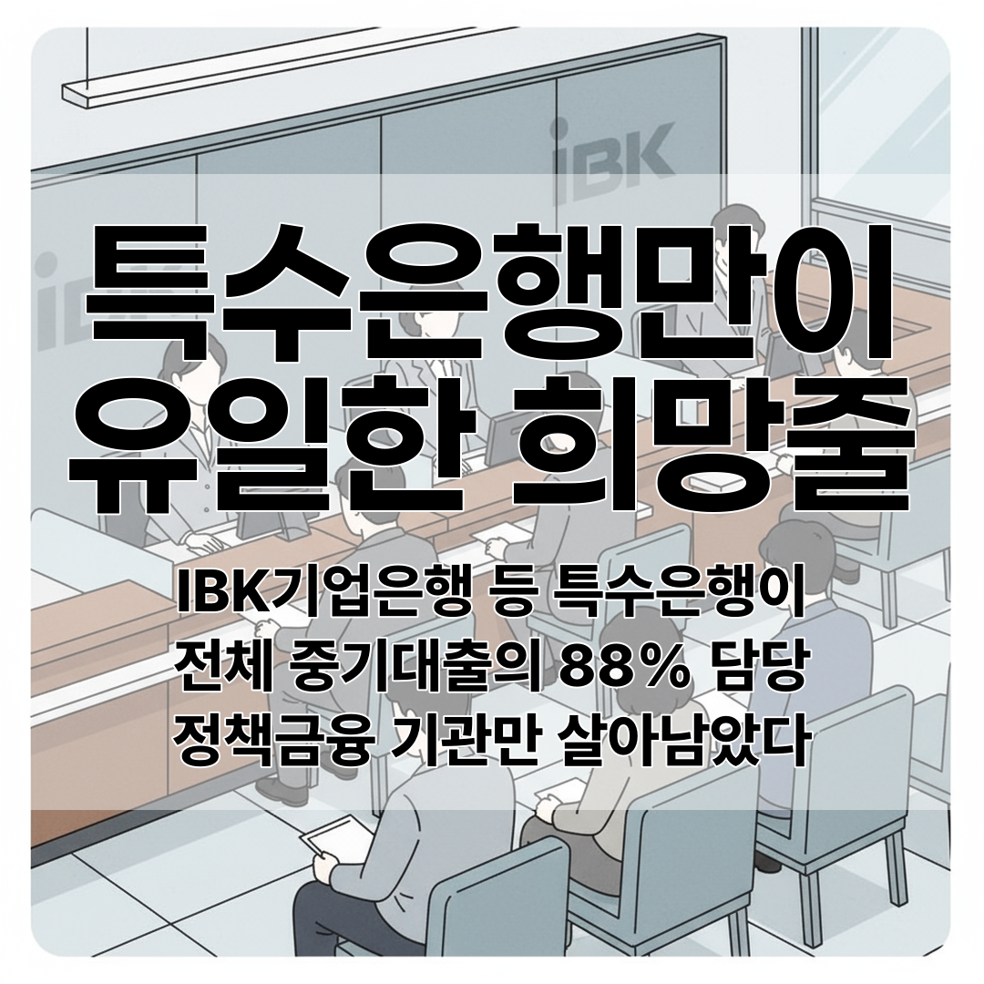 2025년 들어 시중은행들이 중소기업 대출을 대폭 축소하면서, IBK기업은행 같은 특수은행이 전체의 88%를 떠맡게 됐어요.
