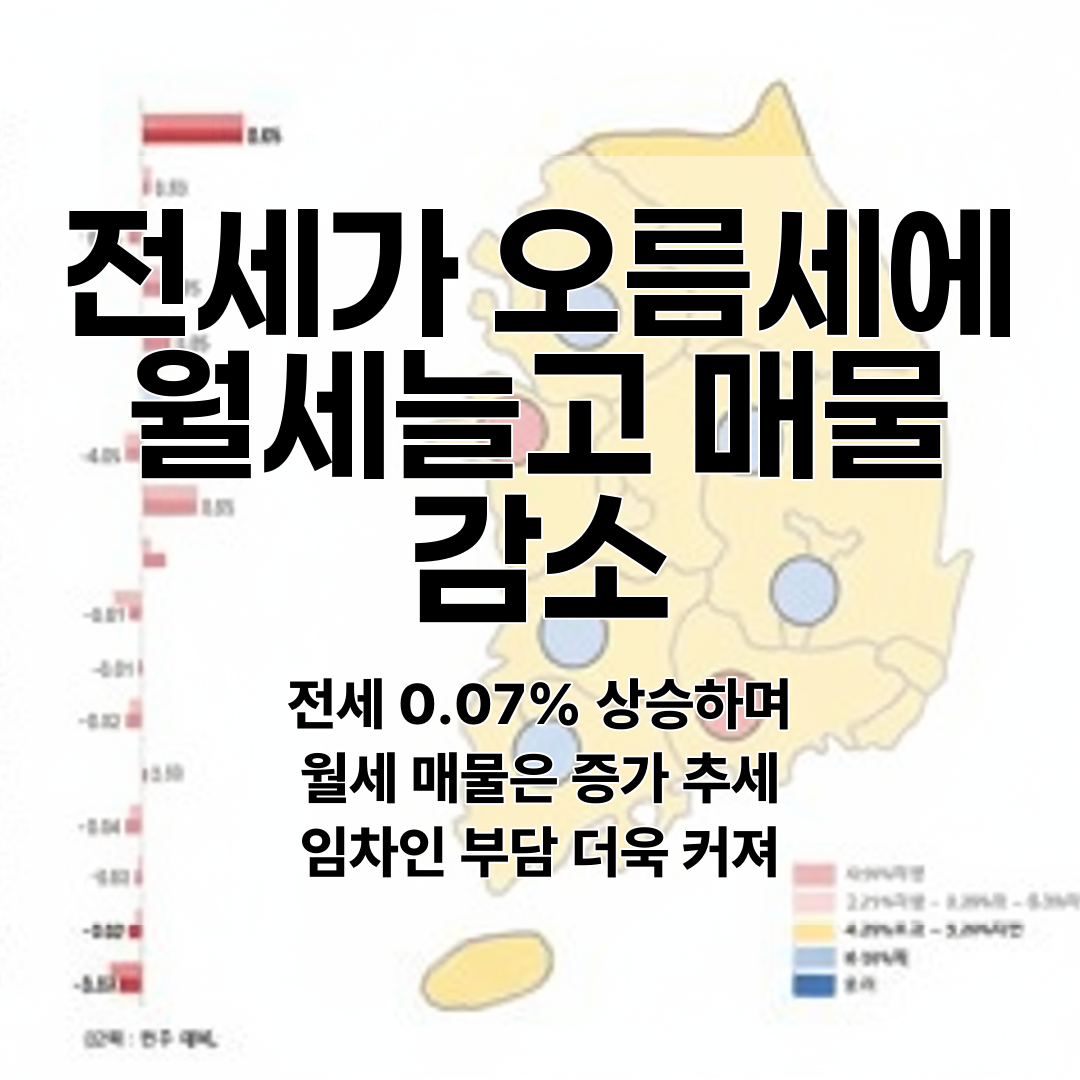 서울 전세가격이 0.07% 상승했으며, 전세매물 감소로 월세 전환이 확대되어 임차인의 부담이 가중되고 있다.