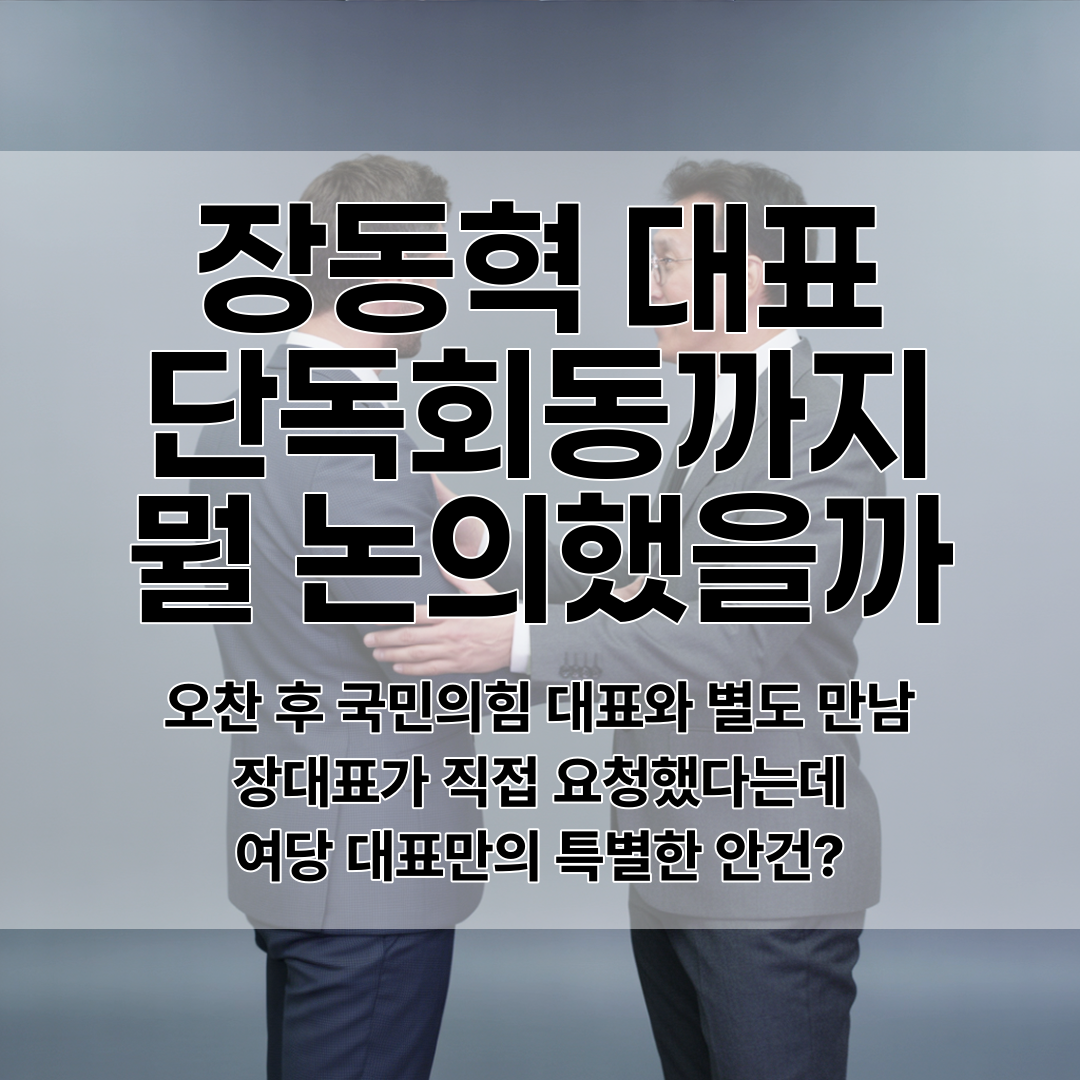 장 대표가 직접 요청했다고 하는데, 여당 대표로서 야당 대표가 있는 자리에서는 말하기 어려운 내용이 있었던 걸까요? 🤐