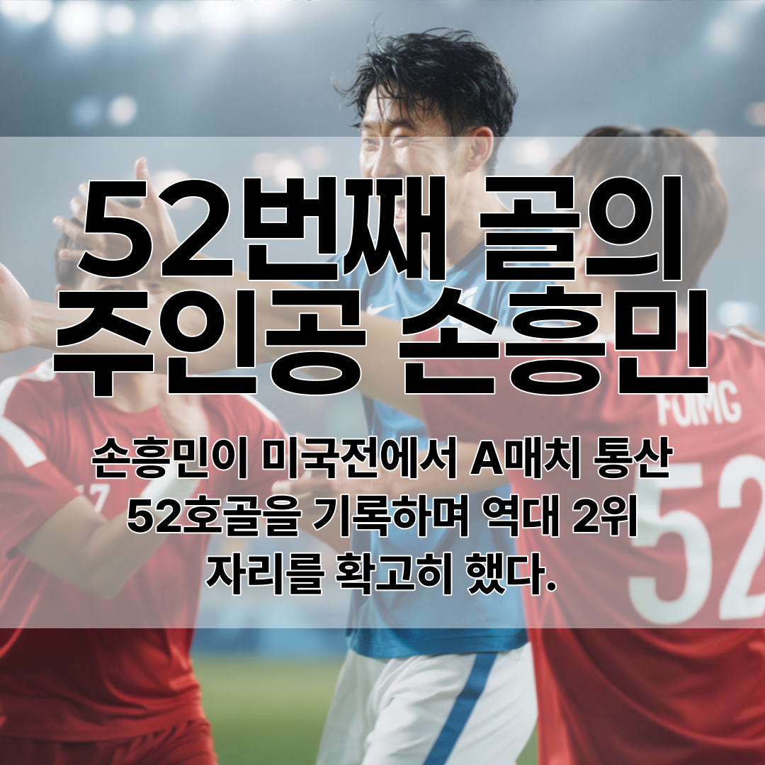 손흥민이 2025년 9월 7일 미국과의 평가전에서 전반 18분 이재성의 패스를 받아 왼발 슛으로 A매치 통산 52번째 골을 기록했다.