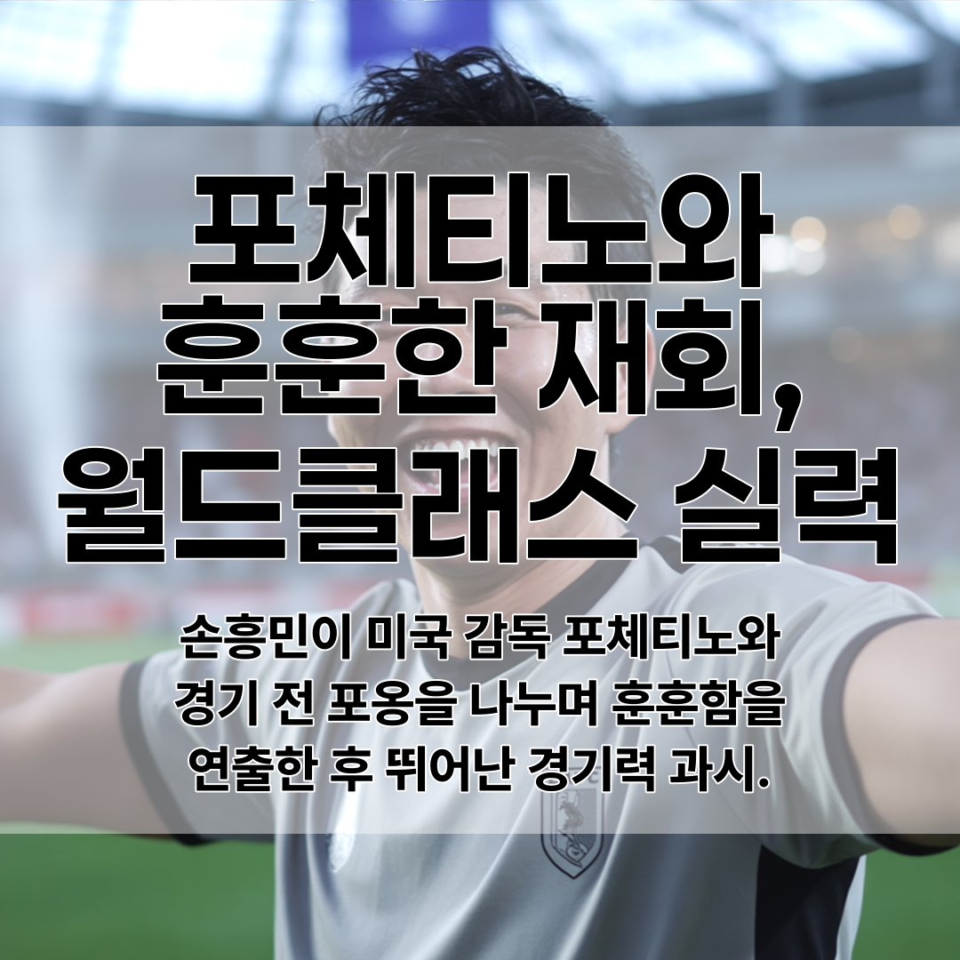 경기 전 미국 대표팀 마우리시오 포체티노 감독과 손흥민이 포옹을 나누며 훈훈한 장면을 연출했으며, 손흥민은 63분간 뛰며 월드클래스 면모를 과시했다.