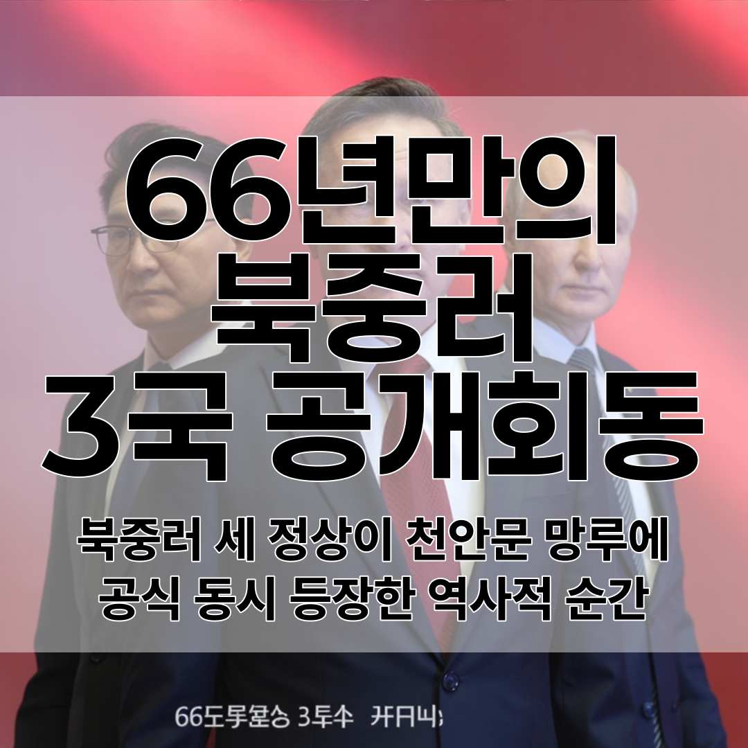 이는 1959년 이후 무려 66년 만에 북·중·러 정상이 공식 국제 행사에서 나란히 선 역사적 순간이었어요. 이날 장면은 전승절 80주년을 맞아 전 세계에 큰 충격을 안겼죠.