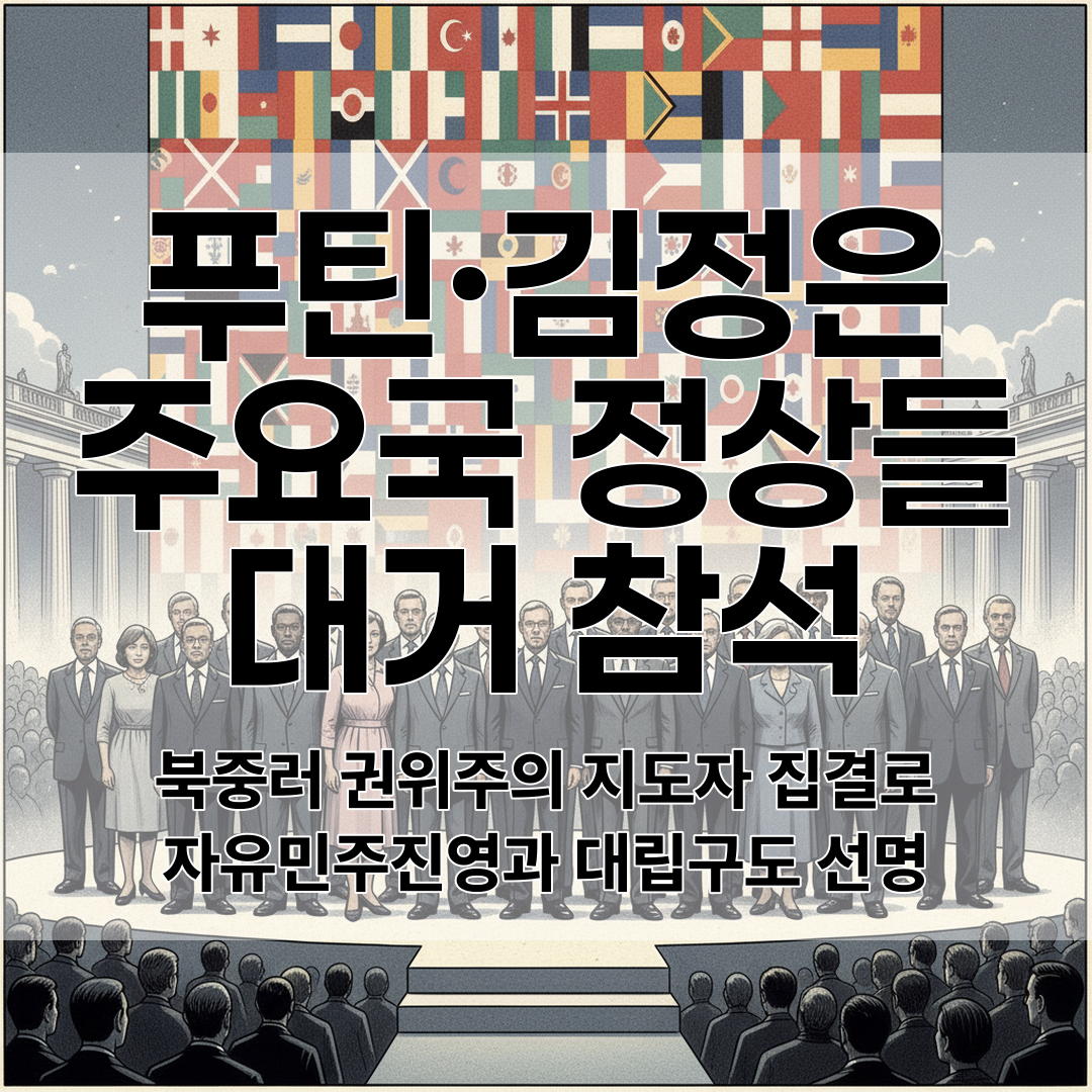 블라디미르 푸틴 러시아 대통령과 김정은 북한 국무위원장을 비롯해 소위 '북·중·러' 권위주의 국가 지도자들이 대거 모습을 드러냈거든요 🤝