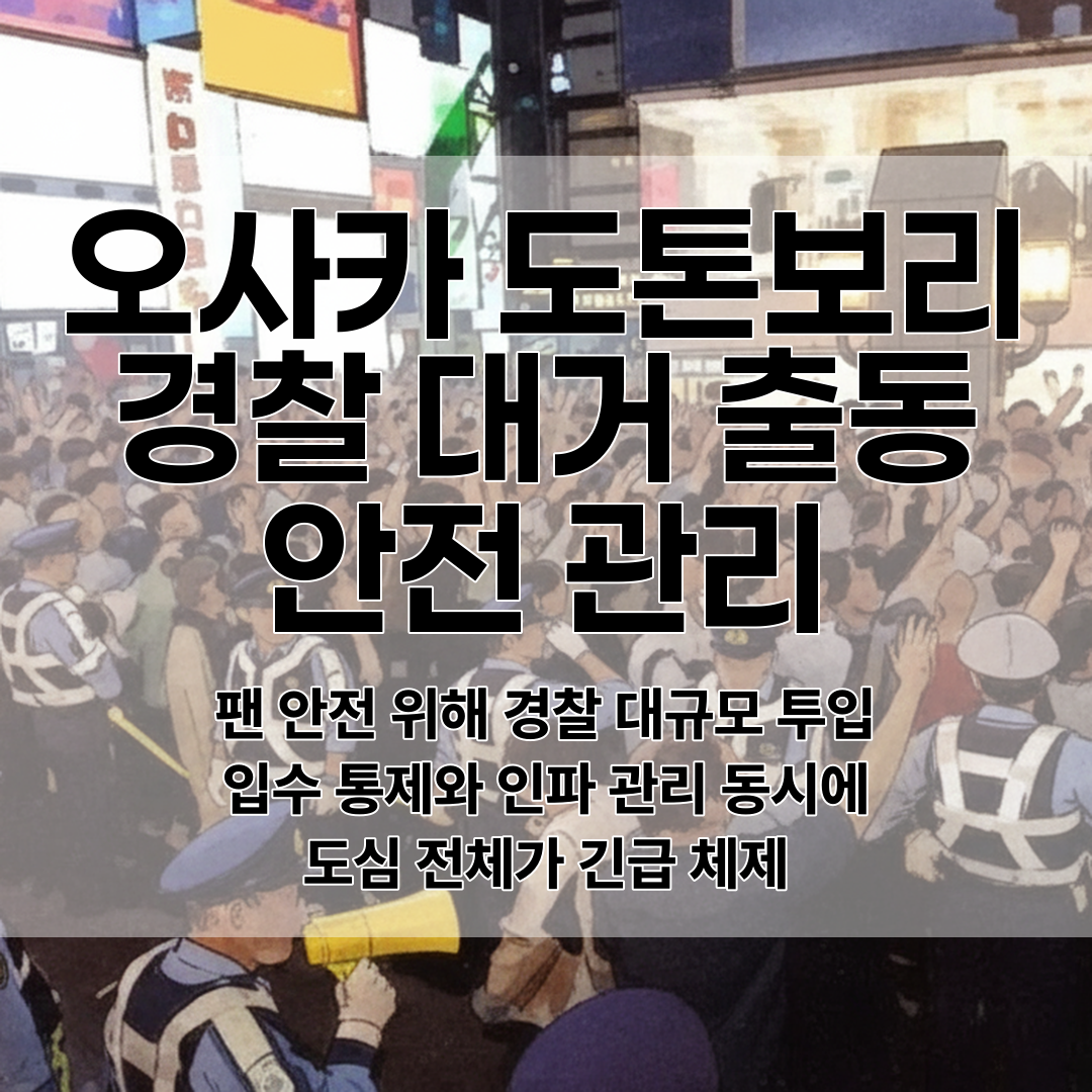 한신 우승 직후 수많은 인파가 도톤보리 강으로 몰리자, 오사카 경찰이 대규모 병력을 긴급 투입했어요! 👮♂️