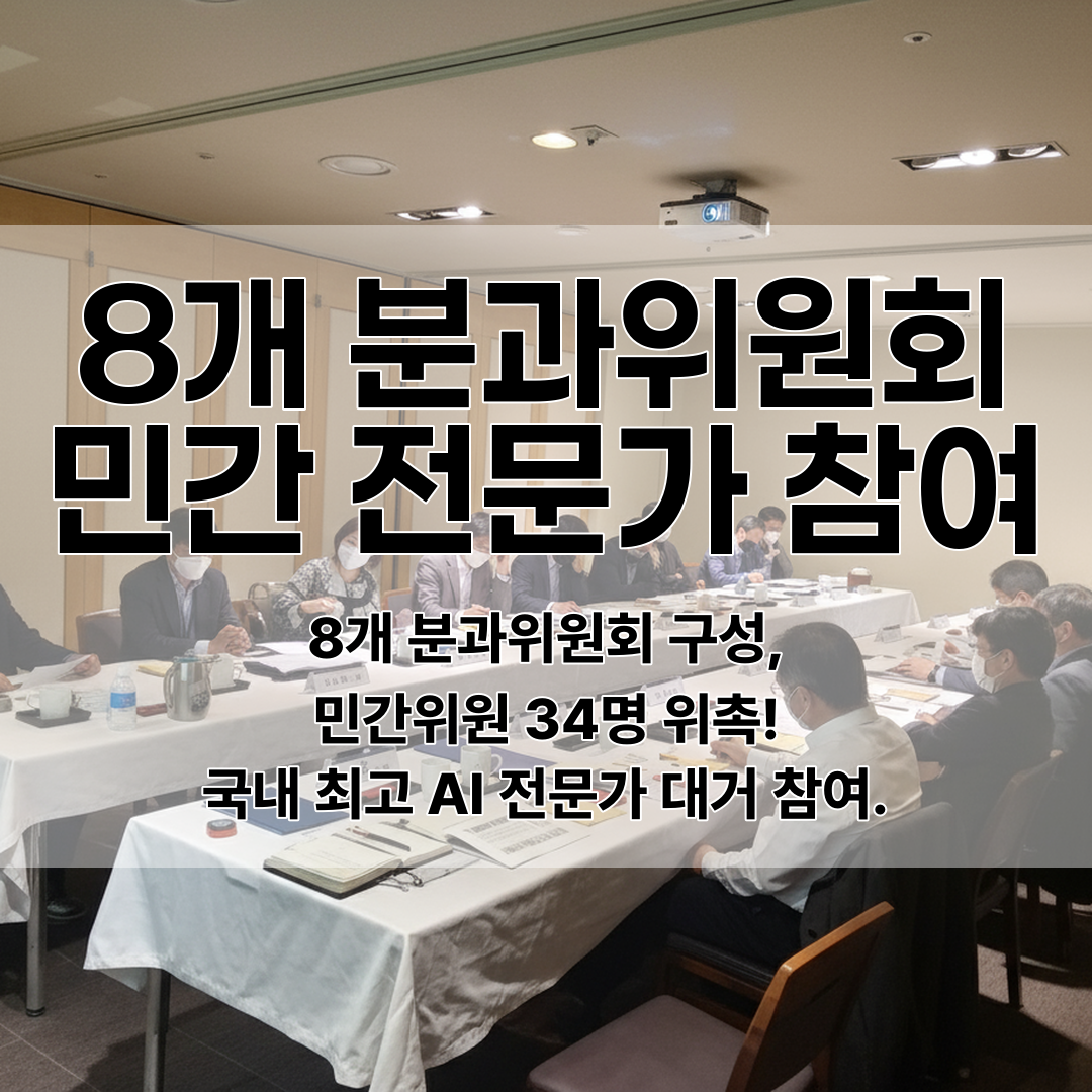 기술혁신 및 인프라, 산업 AI 전환, 데이터, 사회, 국제협력, 과학 및 인재, 국방 및 안보 등 8개 분과위원회가 설립되었고, 총 34명의 민간위원이 위촉되어 산업과 현장 중심의 운영체계를 강화했다.