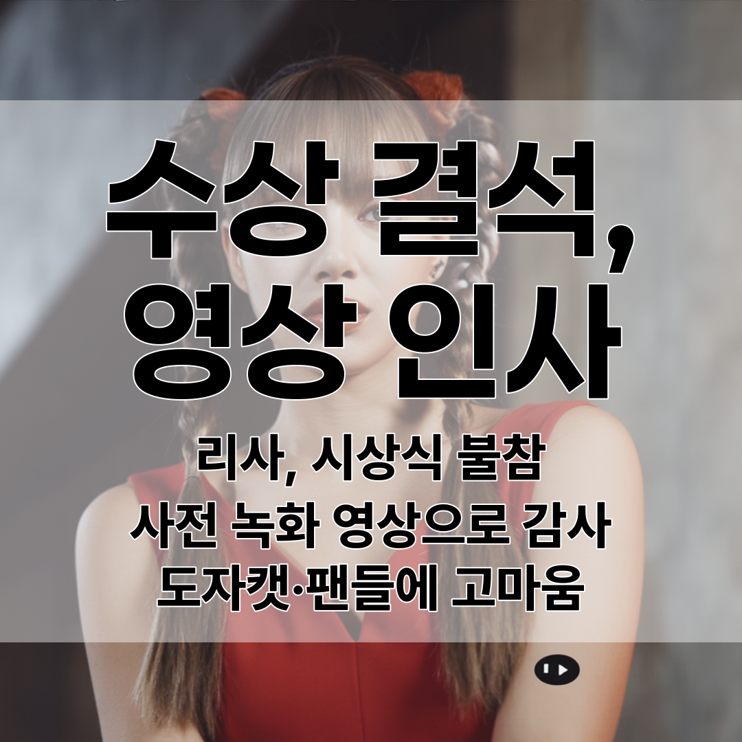 아쉽게도 리사는 이번 시상식에 직접 참석하지 못했어요. 대신 미리 준비한 수상 소감 영상을 통해 팬들과 전 세계에 진심 어린 감사 인사를 전했답니다! 📹