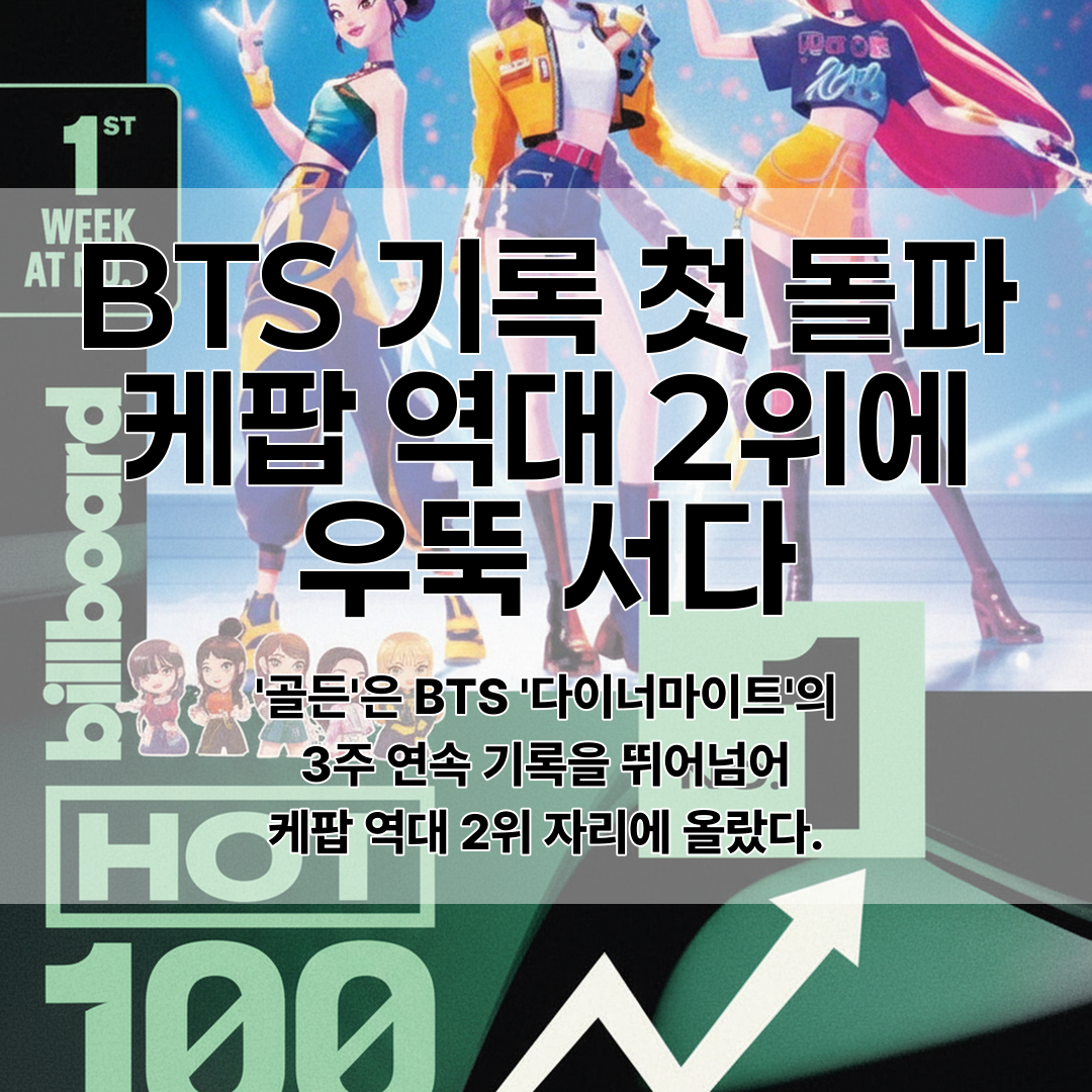 '골든'은 빌보드 핫100에서 방탄소년단(BTS)의 '다이너마이트'가 세운 K팝 곡 최초 3주 연속 1위 기록을 돌파했어요.